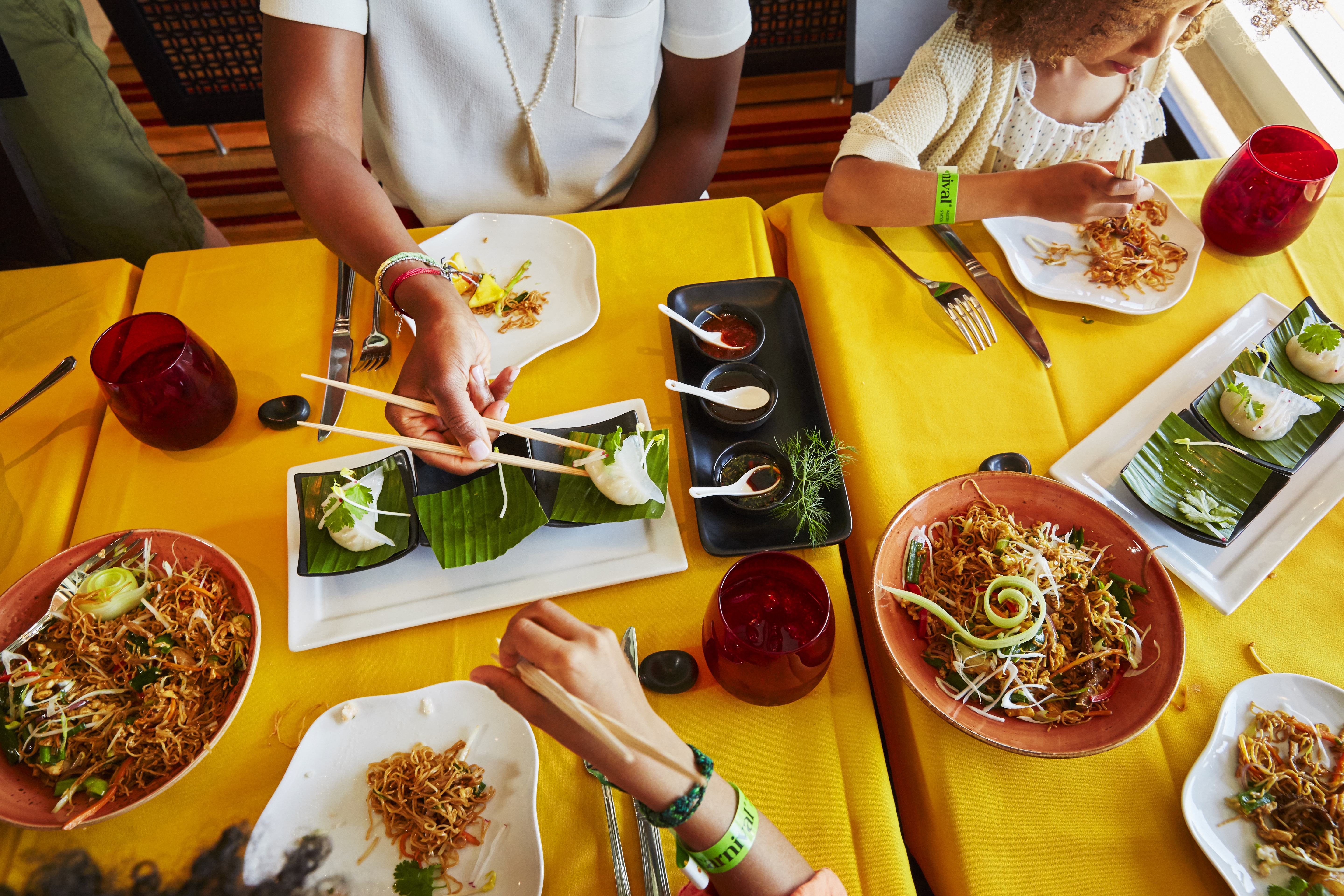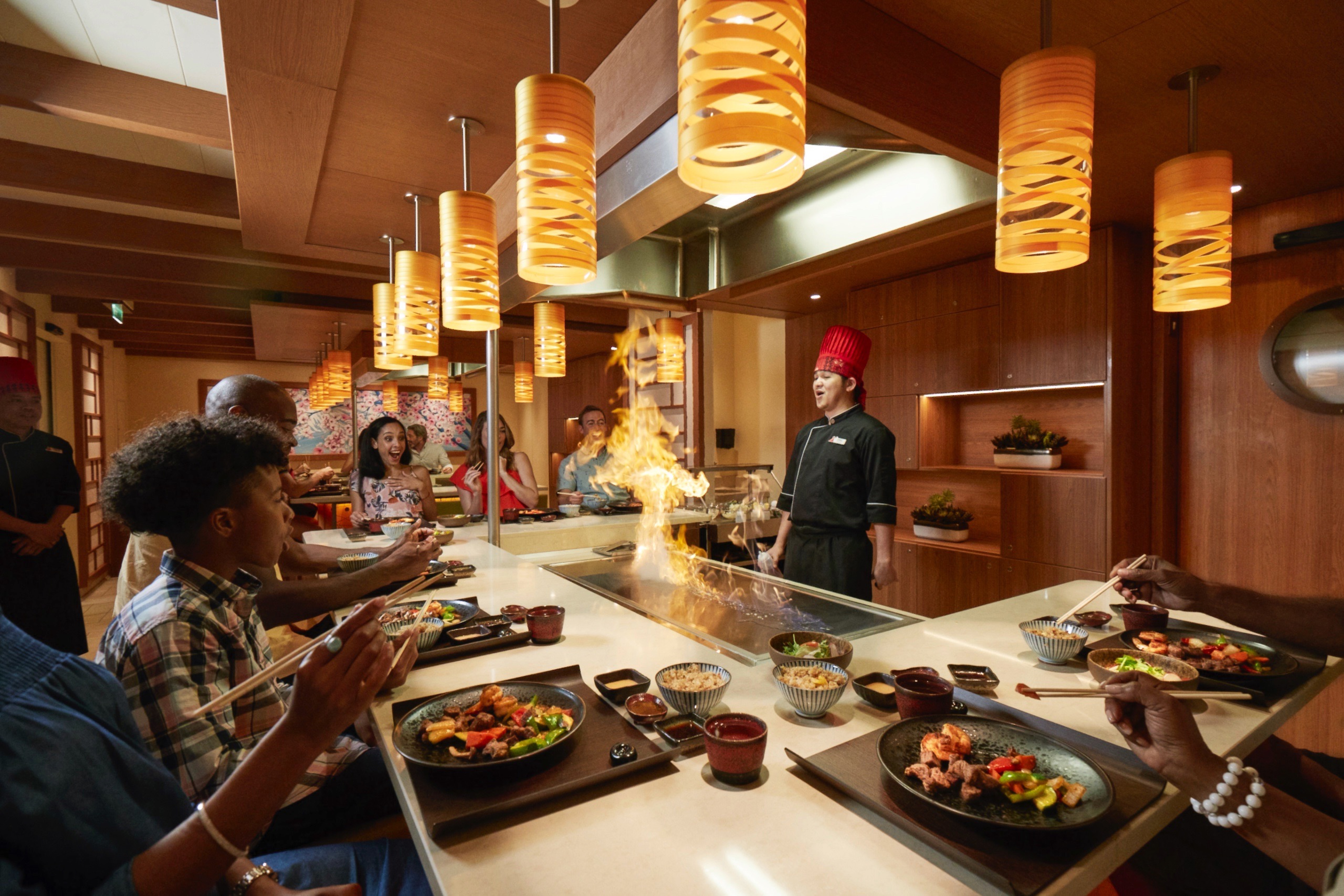 The teppanyaki chef’s attention to craft is front-and-centre… in fact it’s right there at your table! One part meal, one part performance — and all parts unforgettable — the Bonsai Teppanyaki™ experience is sure to delight guests. Take a little time out of your vacation to gather around a large shared table for a meal that’s not even a little ordinary. The experience begins with a curated selection of traditional tastes, followed by a choice of tempting appetisers before your chef expertly prepares the main course, which features selections like filet mignon, grilled tofu or a seriously impressive array of fish, shrimp and lobster. (Trouble choosing one? Choose a combo!) In the teppanyaki tradition — and Carnival’s tradition of fun — expect an interactive, satisfying meal full of surprising spectacles, delicious delight… and, you know, flying food.