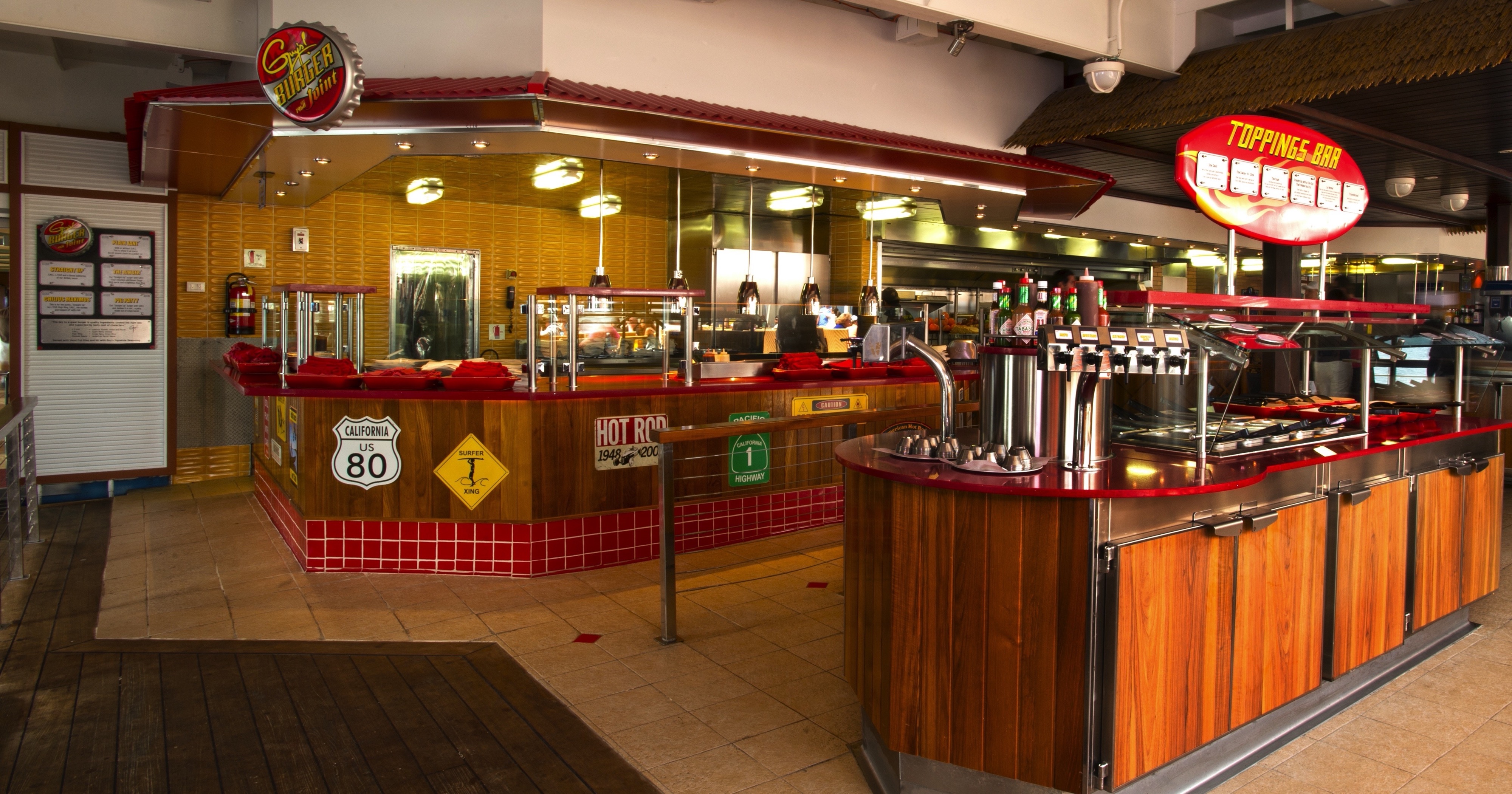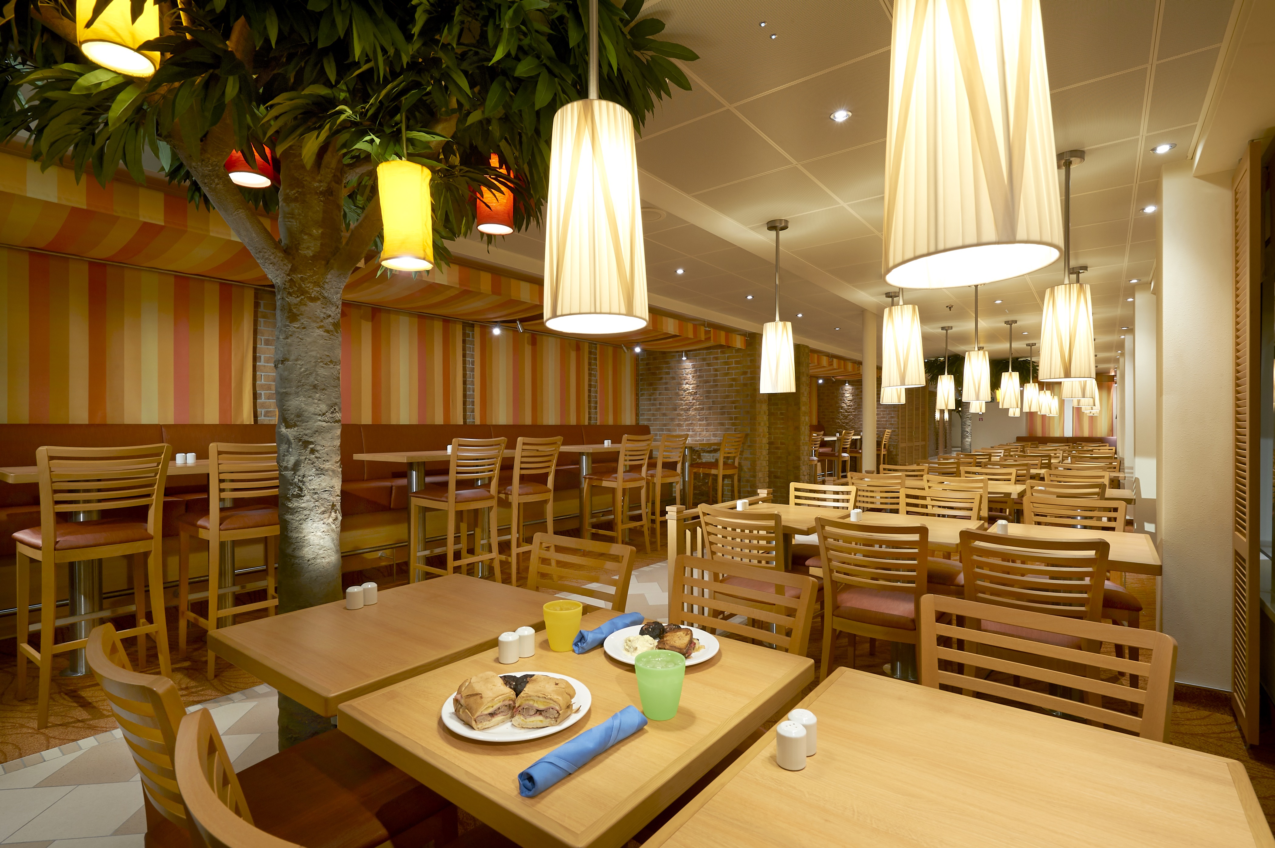 Featuring an amazing variety of casual dining spots, each just a few flip-flopped steps from the last, Lido Marketplace always has a special something ready to satisfy your latest craving spectacularly. Here we do it with dozens of what-to-eat options... great choices like BBQ, a deli counter, salad bar, an Asian station and a pasta bar... plus one spot where the chef serves up a different surprise daily! At Lido Marketplace, there’s tons of indoor and outdoor seating made for gathering around, so you can enjoy your personal faves in your favourite company for lunch or dinner, or even breakfast! Lido’s also where you can find soft serve, frozen yogurt and fresh pizza 24 hours a day... which so far seems to be enough to satisfy everybody.