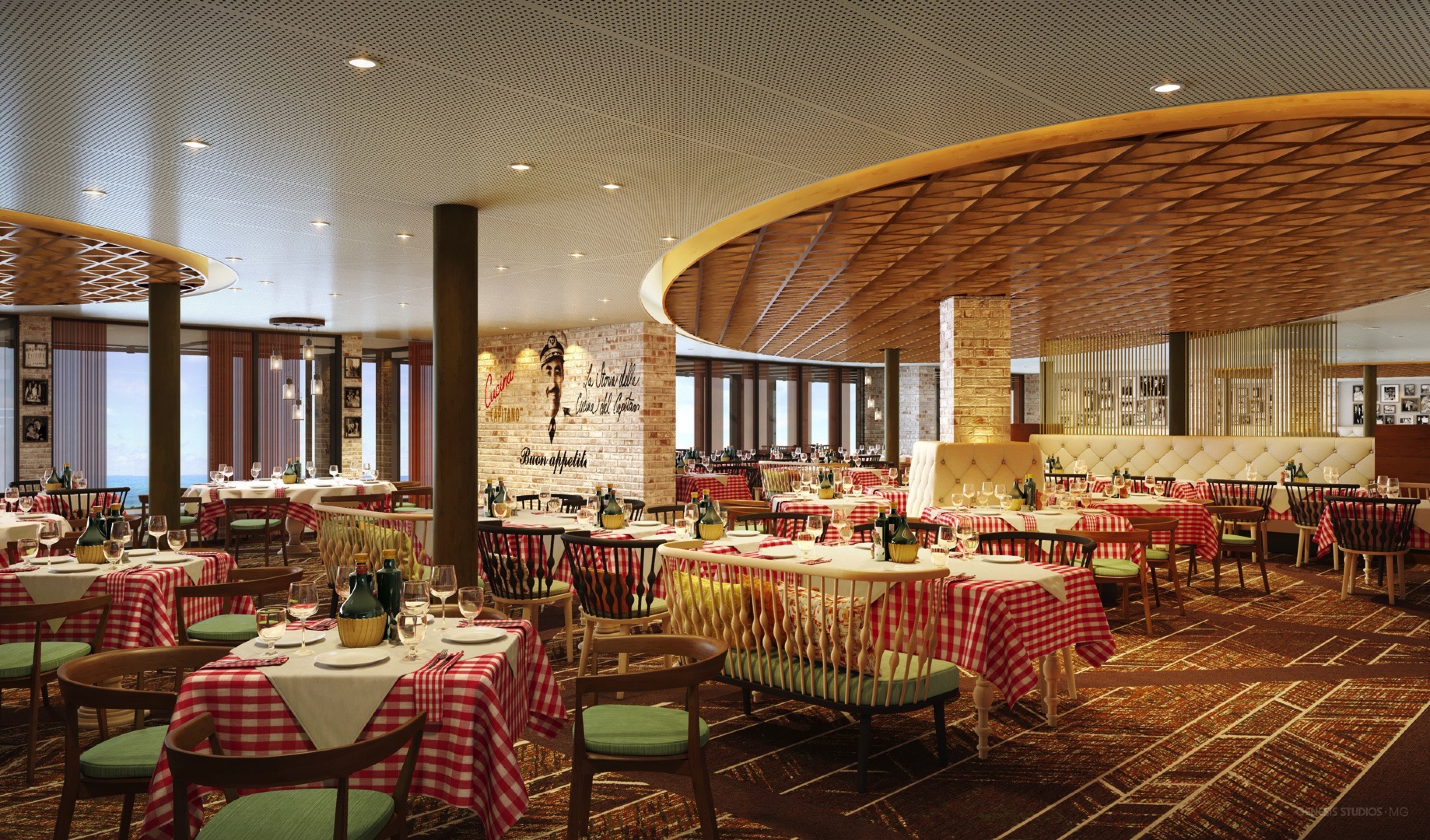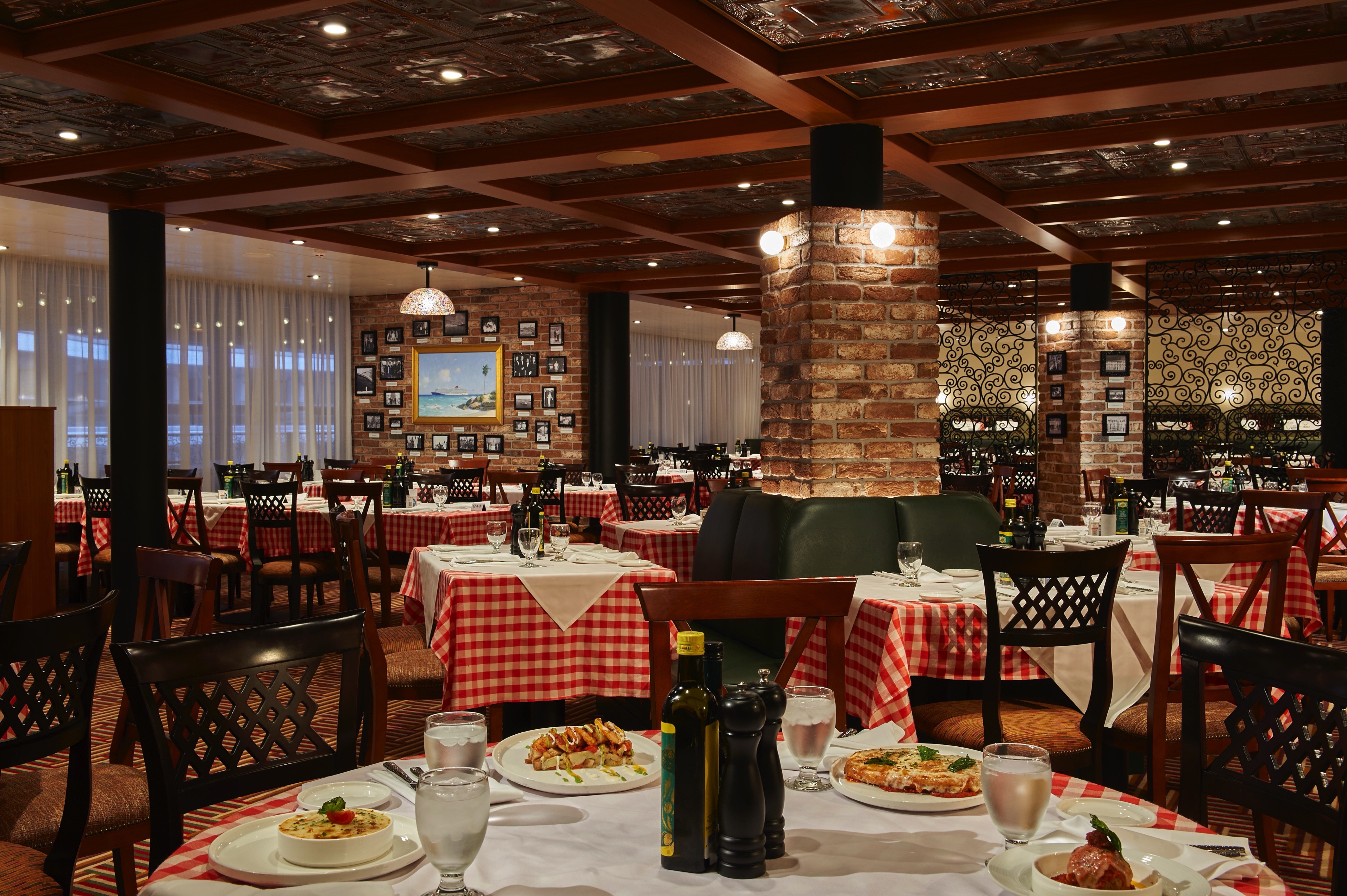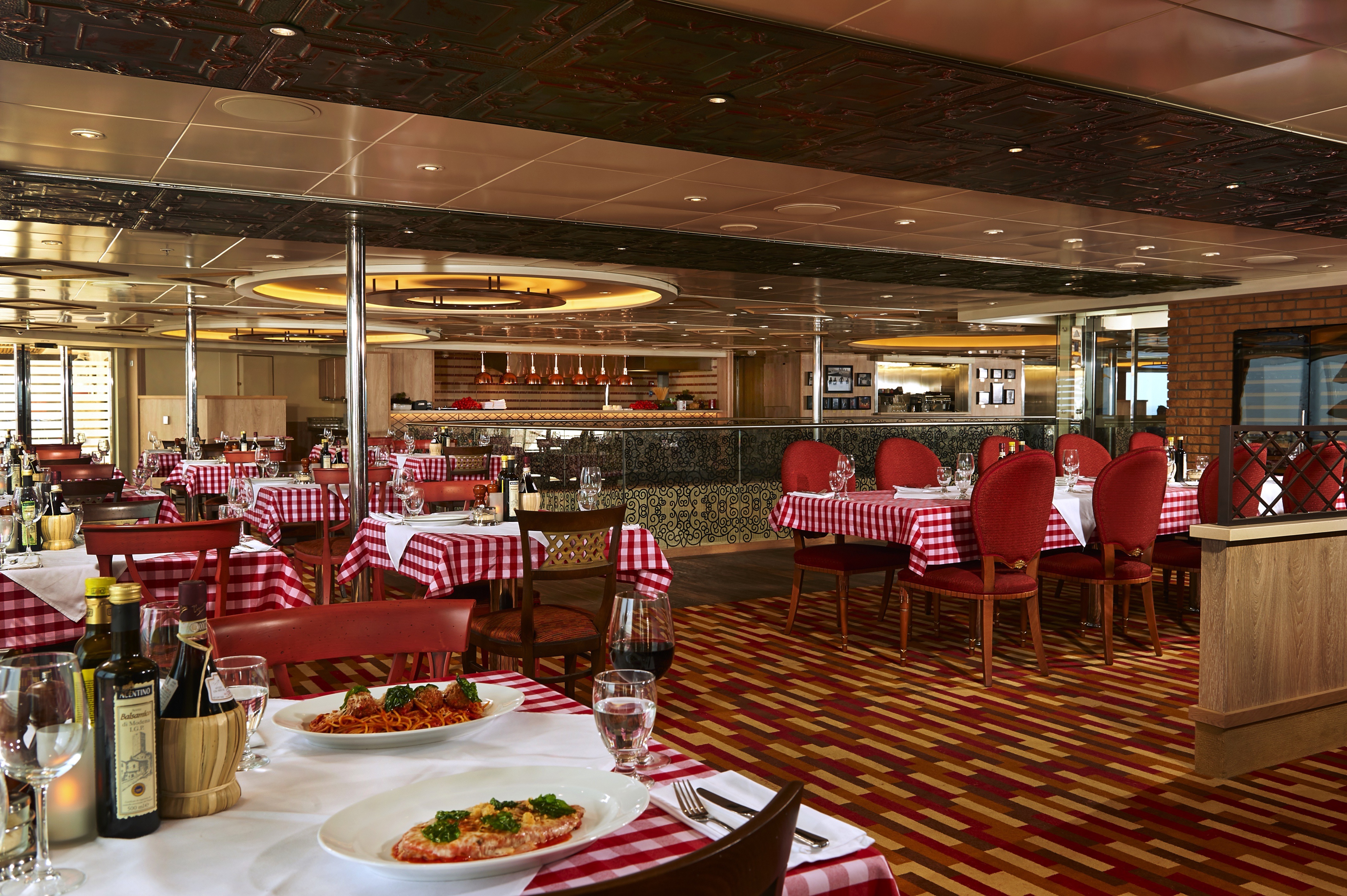 The iconic red and white checkered tablecloth in your neighborhood Italian trattoria means you’re in for a certain kind of dining experience. At a table such as this, who’s gathered around is just as important as what’s being served, and we see these as the two halves of the experience at Cucina del Capitano®. Atop our tablecloth you’ll enjoy courses of dishes — antipasti, entrées, pasta and desserts — inspired by our Italian captains’ and officers’ childhoods. It’s all served famiglia-style, because we know that sharing tales of your day’s adventures is best with large plates and great company. Speaking of which, the walls are not only adorned with old snapshots from the crew’s family albums, but you might even find the captain dining at his own table in the corner… all evidence that the rustic Italian country-home atmosphere you see is no façade.
