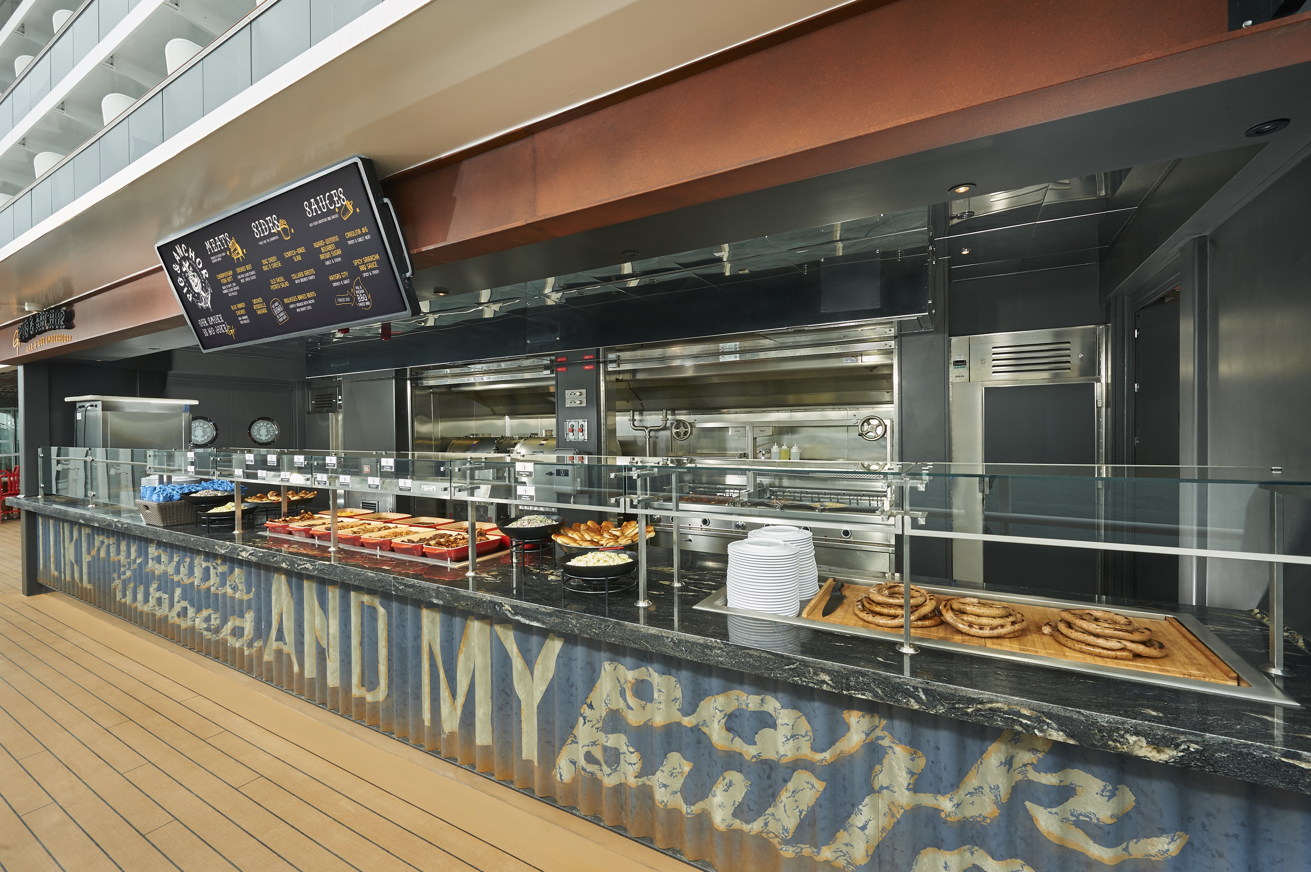 When the cool ocean breeze hits your nose with the sweet smell of smoke, you know you better follow it to Guy’s Pig & Anchor Bar-B-Que Smokehouse. At this onboard, open-air spot, Guy's doin’ his authentic, real-deal barbecue, his way. The Barbecue Hall of Famer is bringin’ some big time meats like Championship Pork Butt, Smoked Round of Beef, Smoked Andouille Sausage and his famous Blue Ribbon Chicken as well as rockin’ sides like Mac Daddy Mac n Cheese, Old Skool Potato Salad and Collard Greens. Throw in his signature line of barbecue sauces and you’ve got a rockin’ sea day on deck.