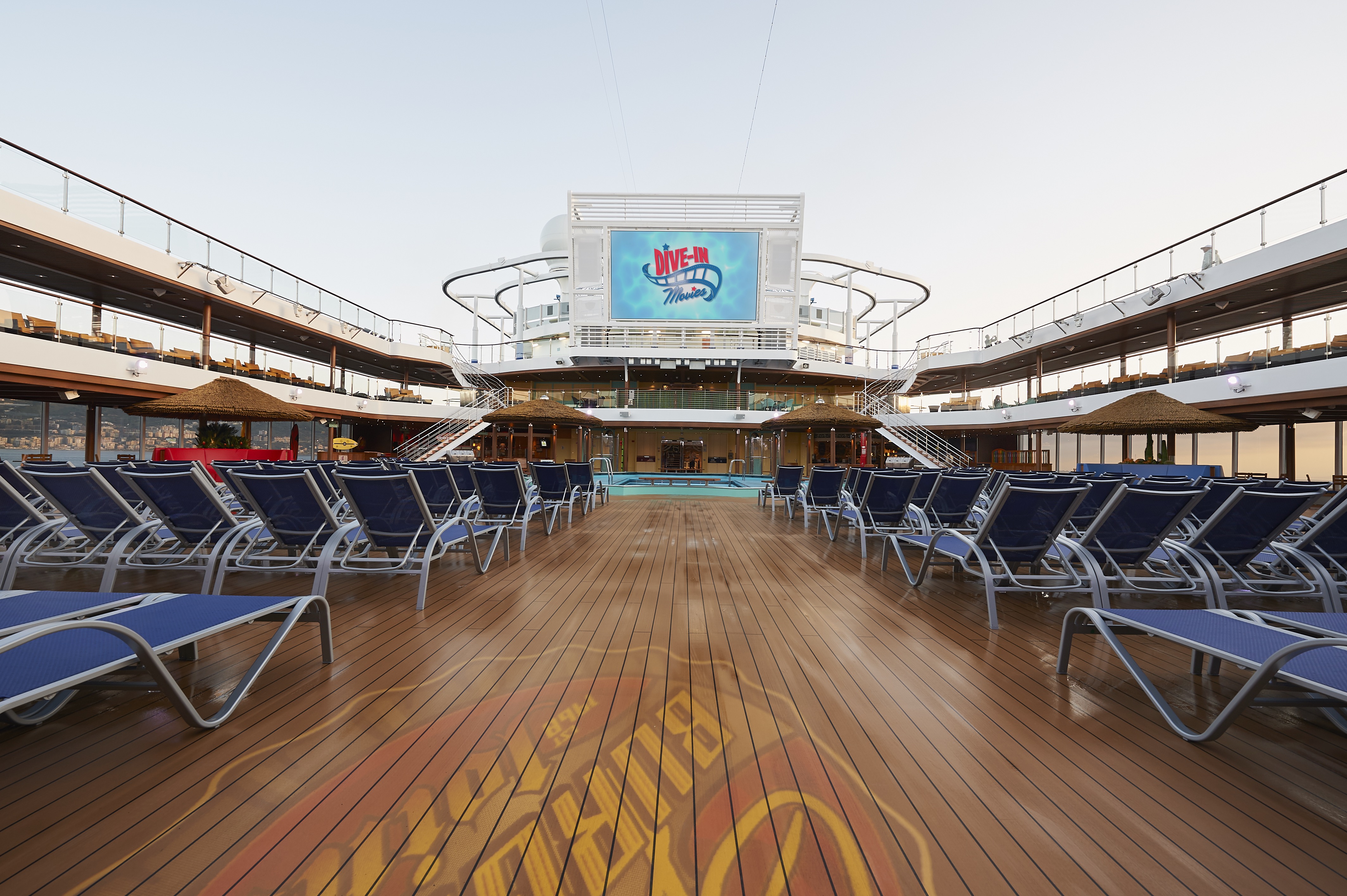 Ready to see stars? Park yourself in front of the big screen — the really big screen — and settle in for some true stars with Dive-In Movies at Carnival Seaside Theatre™. From the comfort of your poolside lounge chair you'll enjoy sporting events and recent blockbuster films. Or bring your suit and take in all this action from the pool itself! The screen is big and beautiful so every seat is the perfect one, but it’s more than just the view… it’s the breeze, and the joy of enjoying some great entertainment together. So come out for a show and try to remember a breezier night you’ve spent at the theatre.