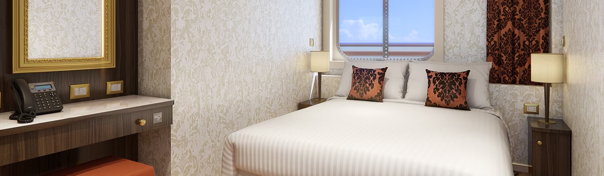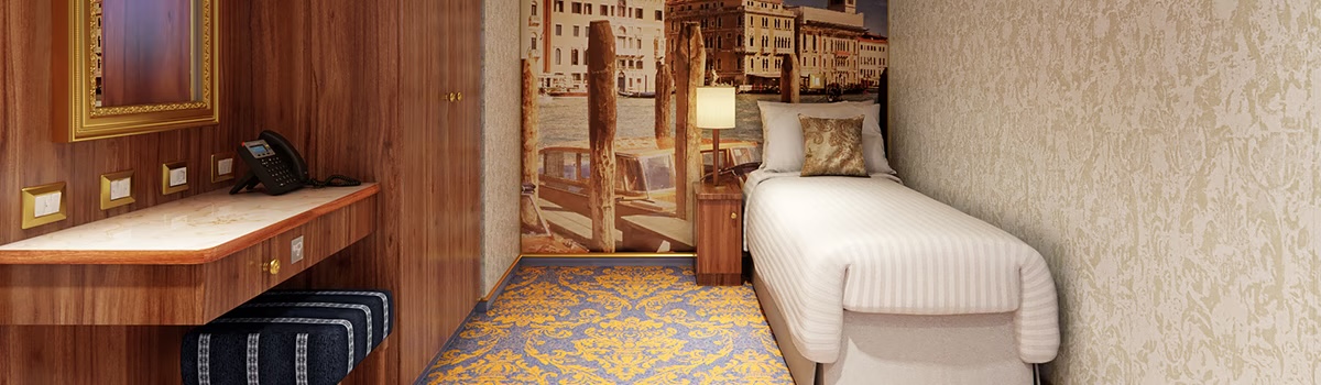 A cozy, classic stateroom decked out with Italian flair… plus amenities like exclusive access to the outdoor Terrazza Carnevale area. (All Terrazza stateroom guests must be 12 or older.)