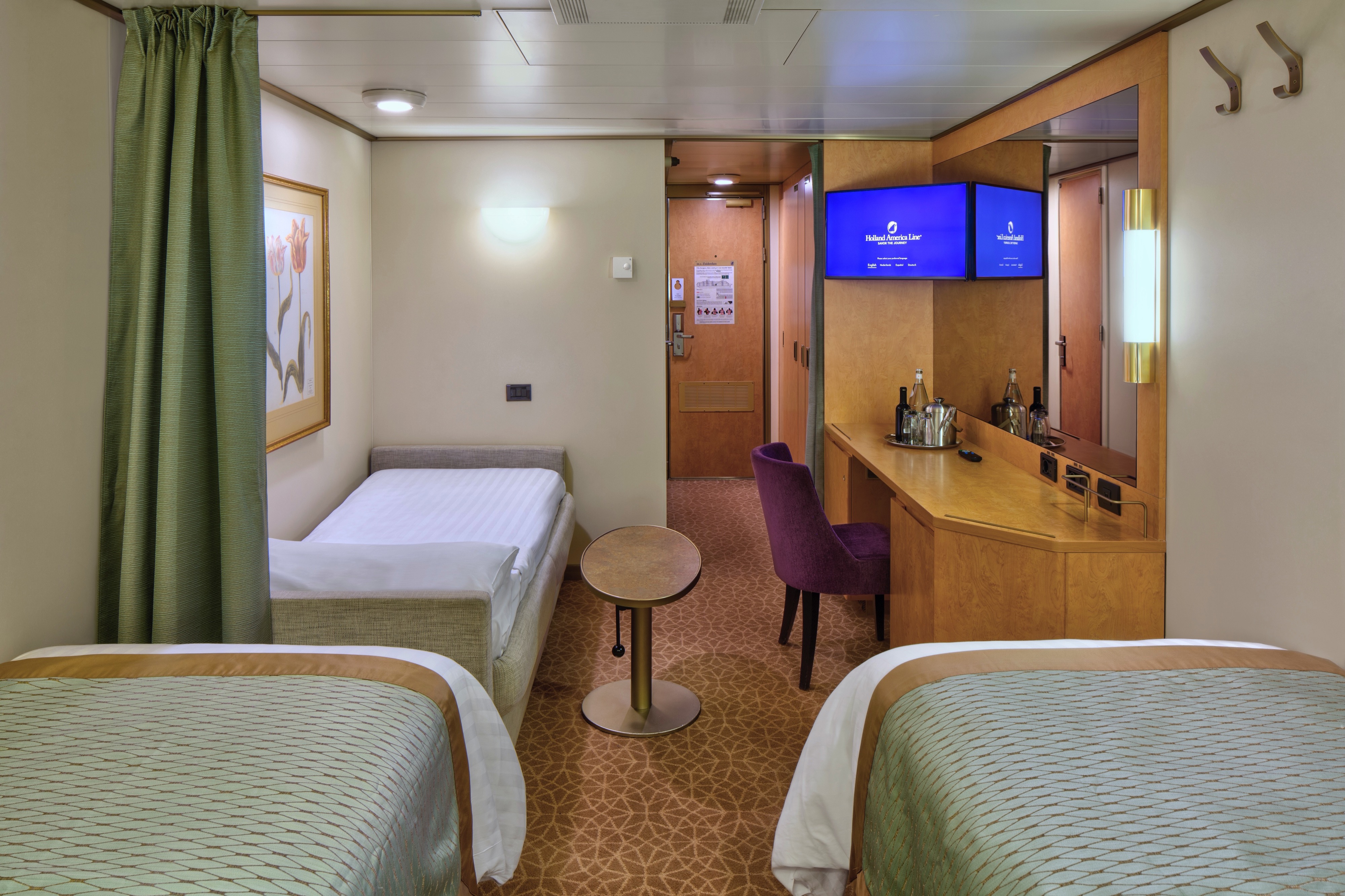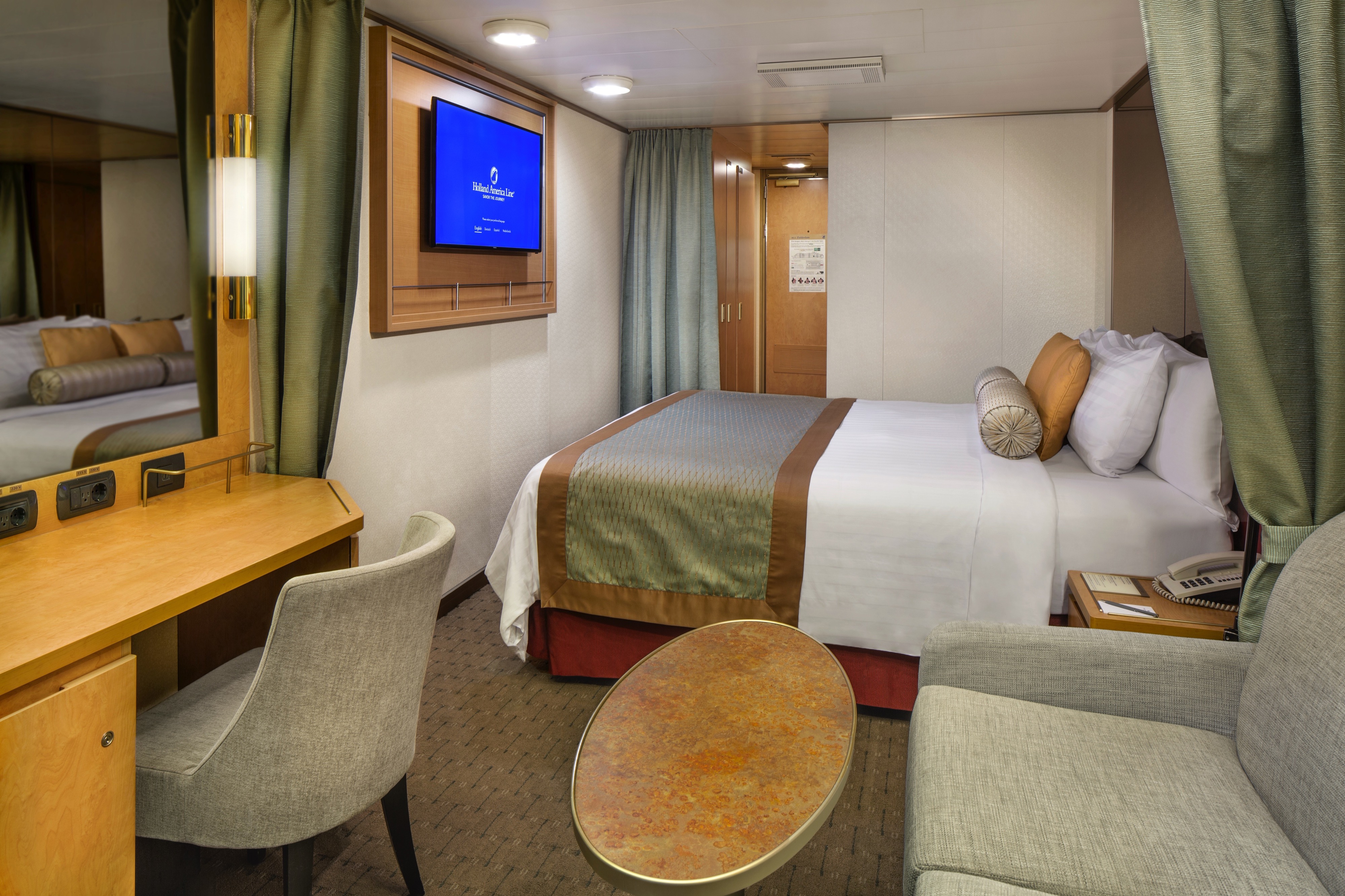 Two lower beds convertible to one queen-size bed—our signature Mariner's Dream™ bed with plush Euro-Top mattresses, premium massage shower heads and a host of amenities are featured in these comfortable staterooms. The configuration of staterooms may vary from the images shown.