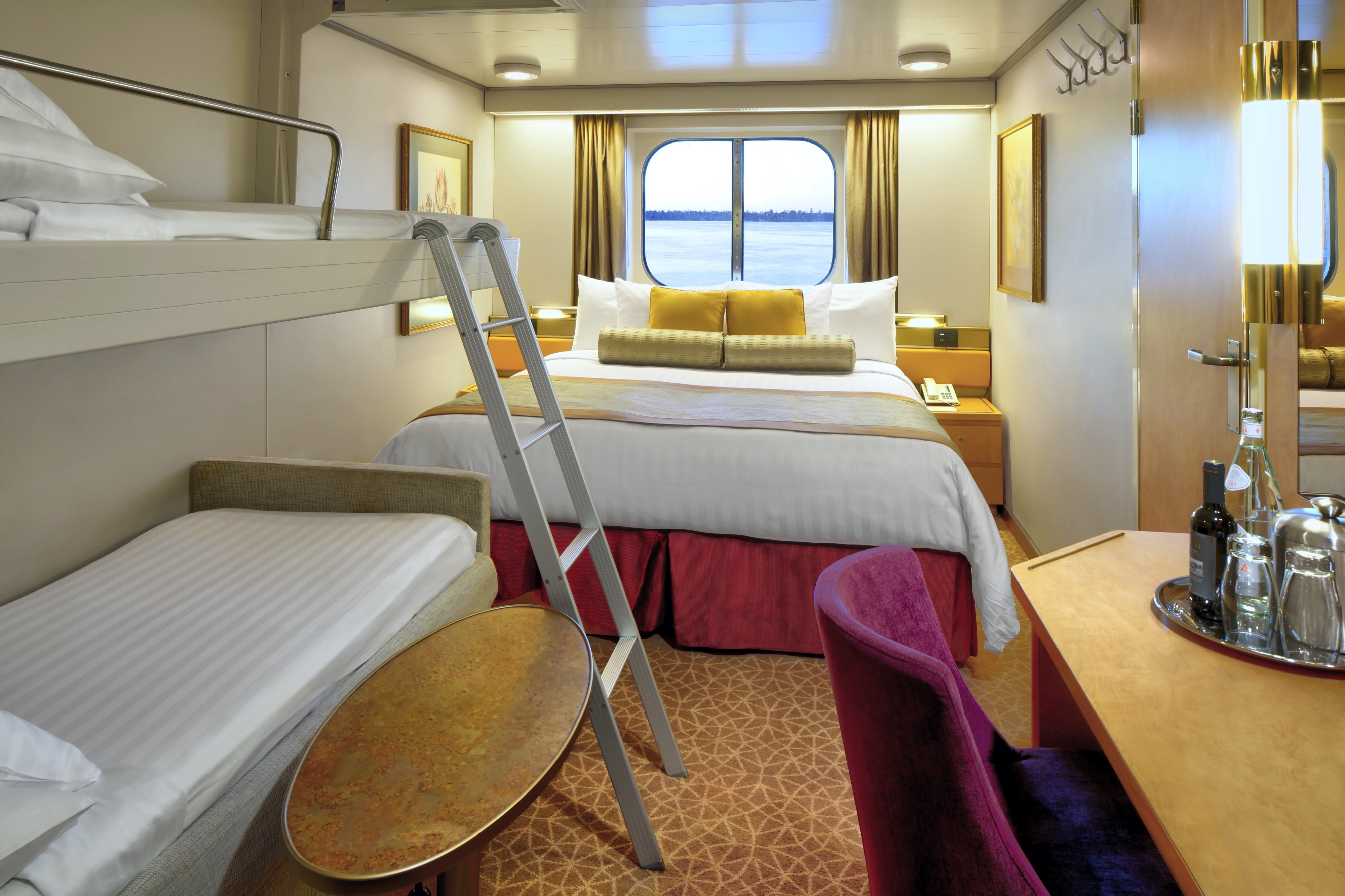 These staterooms feature a partial sea view and include two lower beds convertible to one queen-size bed—our signature Mariner's Dream™ bed with plush Euro-Top mattresses, plus premium massage shower heads and a variety of amenities.