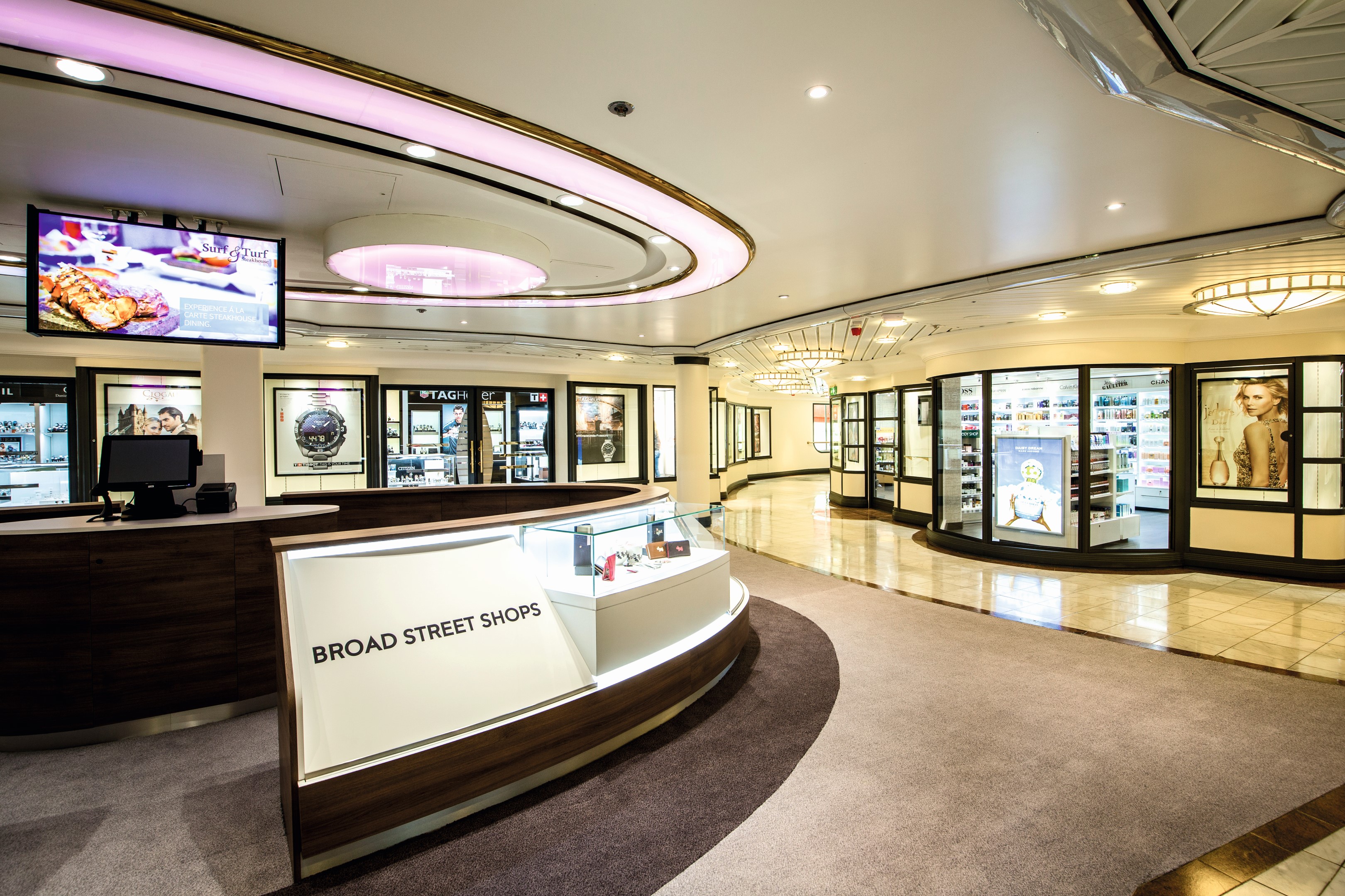 The onboard boutiques are open when the ship's at sea, and stock a great range of duty-free products.