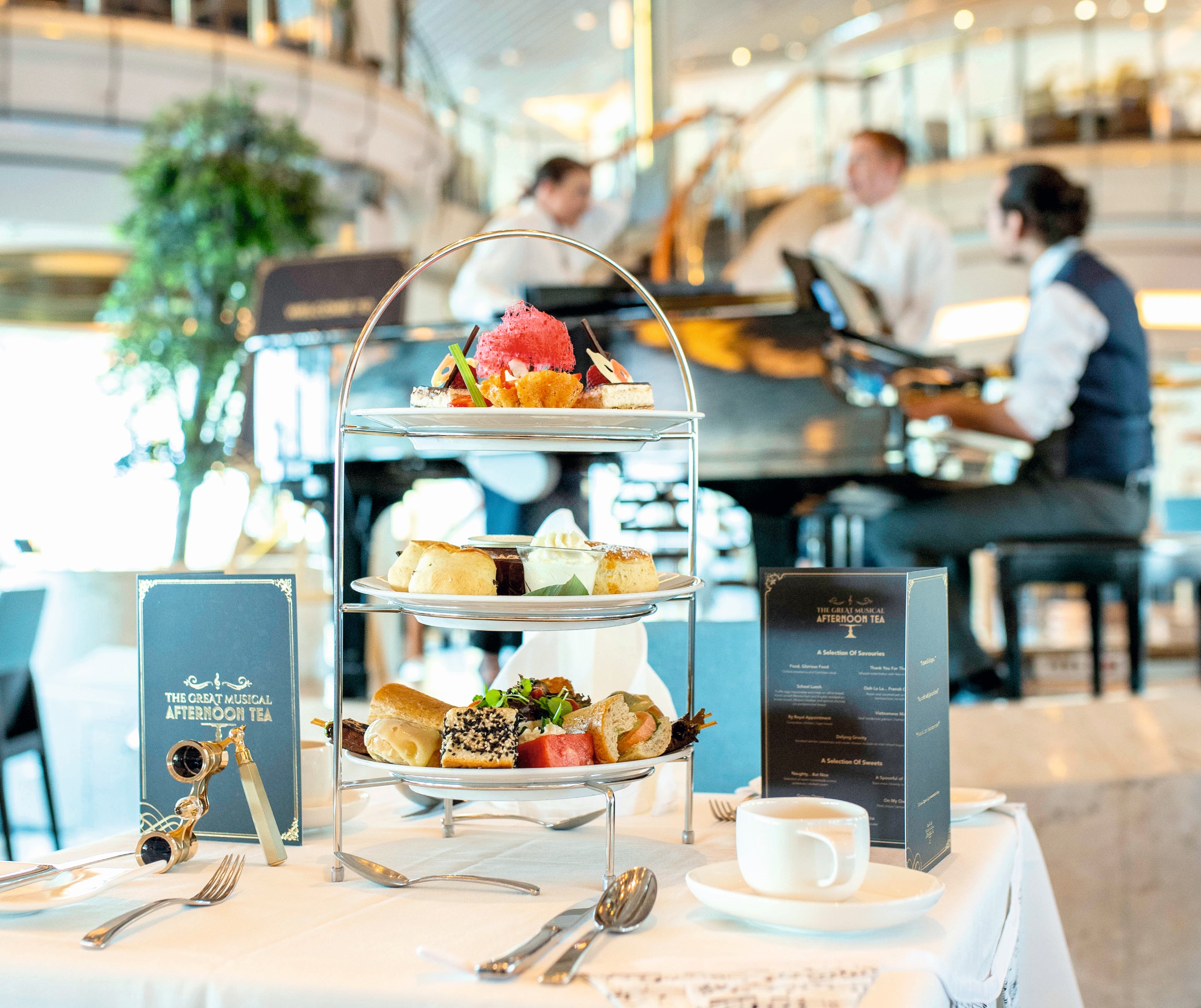 Marella Discovery's main eatery is a big, stylish venue, finished in the colours of the sand and the sea. Daytime meals here come with a side-order of sea views, thanks to floor-to-ceiling windows, and a grand double staircase leads up to a separate eatery. Keep an eye out our new "Treat Yourself" dishes - these cost a little extra and include things like steak and lobster. It also hosts The Great Musical Afternoon Tea*. This weekly event brings the West End to Marella Cruises, with dishes inspired by famous musicals - like the 'Vietnamese Melody' beef tenderloin yakitori and the 'On My Own' petit choux. There are six teas to choose from, as well as a cocktail of your choice. Plus, the whole place is decorated with show posters and memorabilia. Just so you know, The Great Musical Afternoon Tea is a chargeable event. There's a casual dress code here during the day, and smart in the evening.