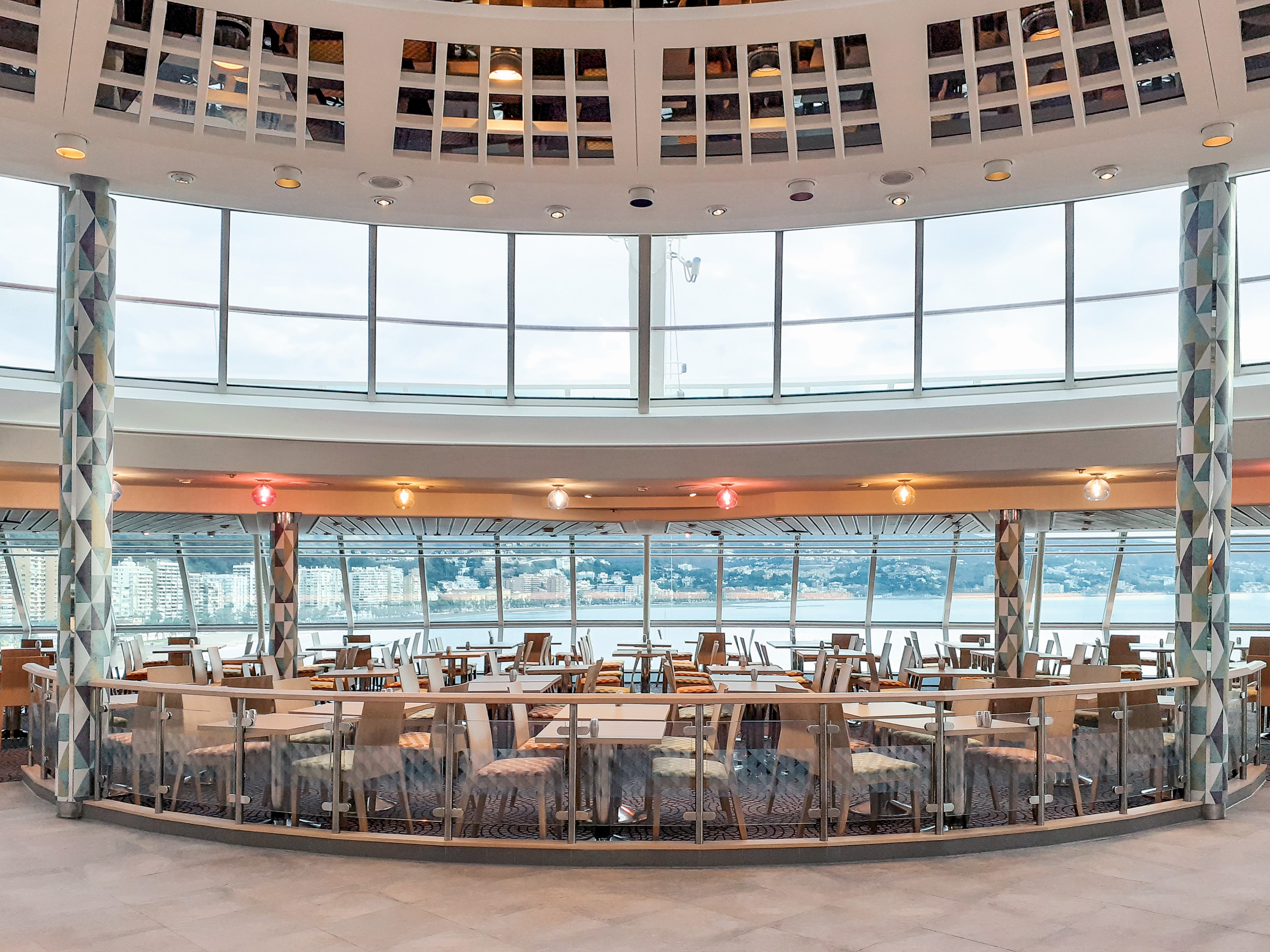 The heart of the ship is taken over by a spectacular five-storey atrium. Think panoramic windows, mood lighting, and Willy Wonka-esque glass lifts. Low-key entertainment is held here, with an agenda that includes cabaret performances and cocktails with the captain.