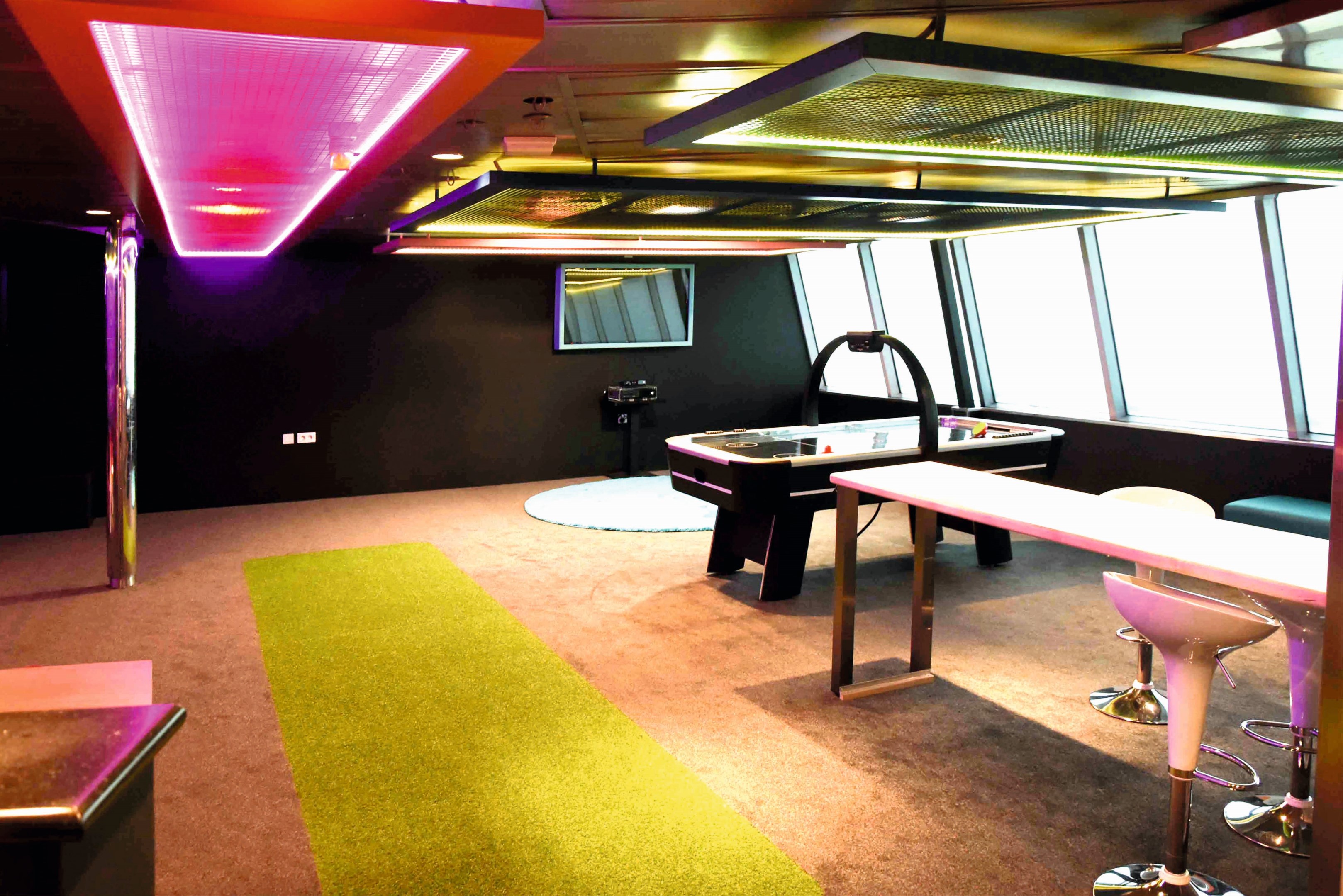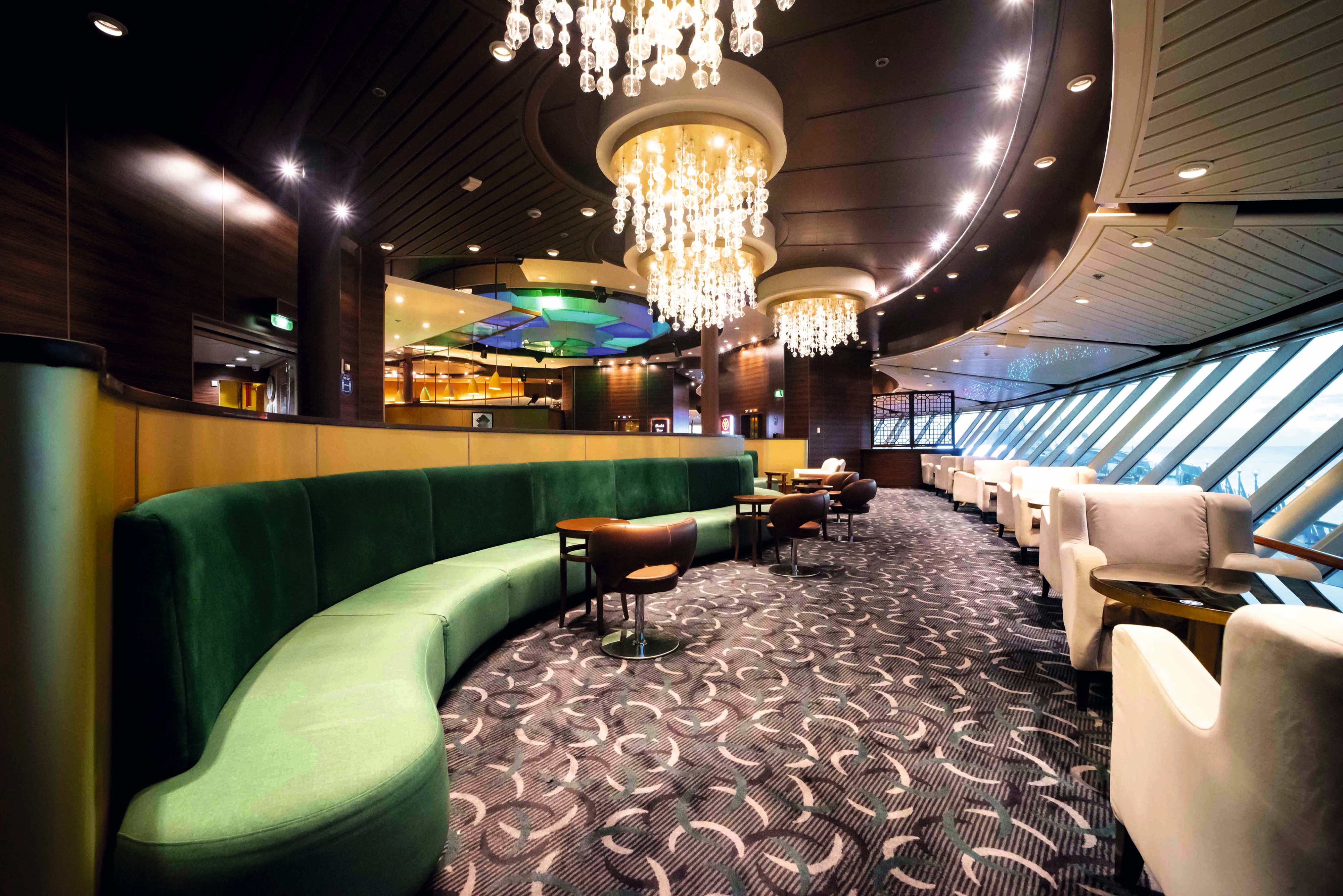 A position on the highest point on deck 11 - where the bar gets its name from - means that drinks in this lounge come with the ship's best sea views. It's a contemporary cocktail bar by evening, transforming into a late-night disco as the hours pass.
