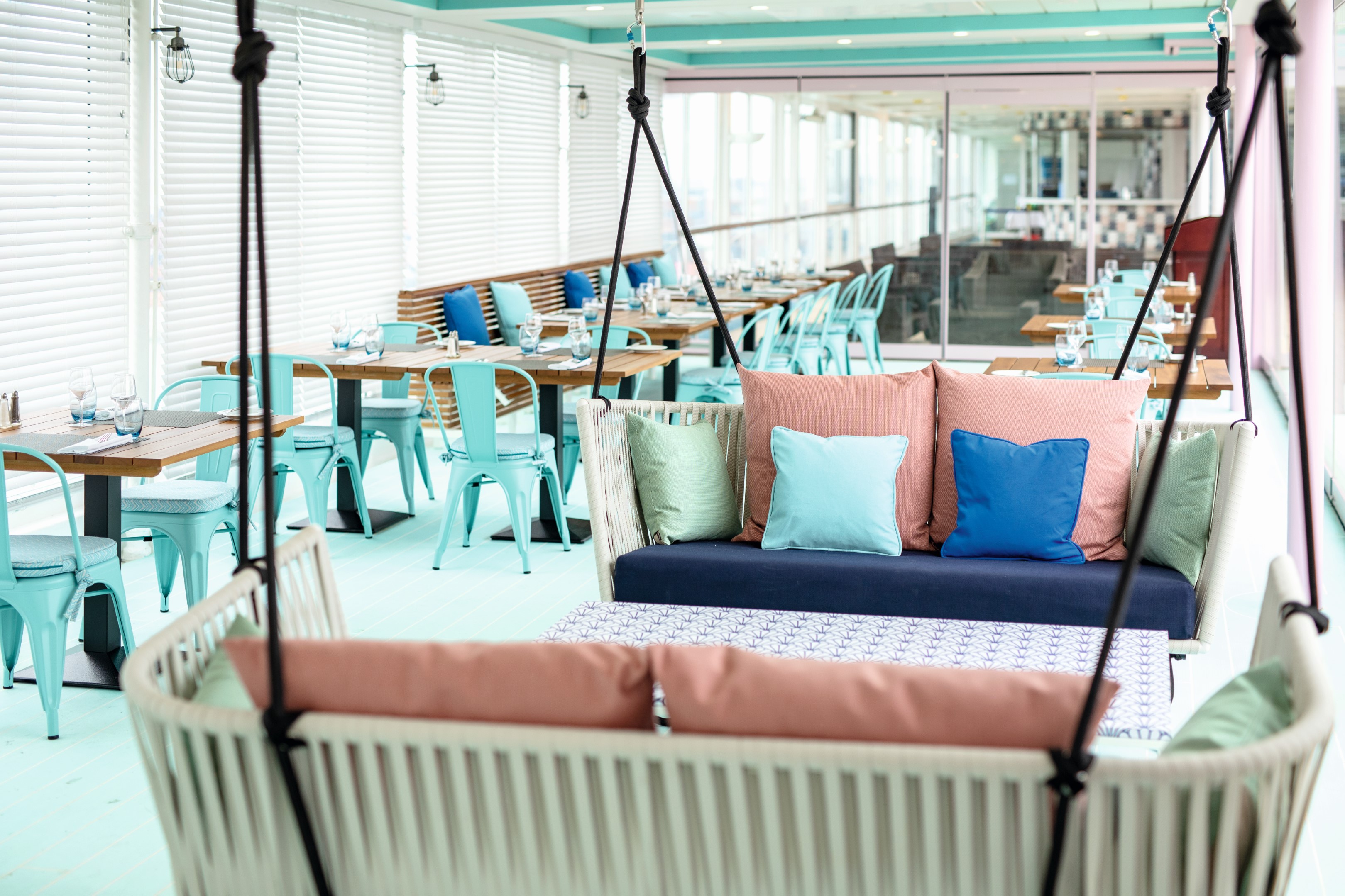 Cocoon chairs and Balinese beds give The Veranda its luxe feel. Plus, it's at the back of the ship, so it shows off stellar views of the horizon.