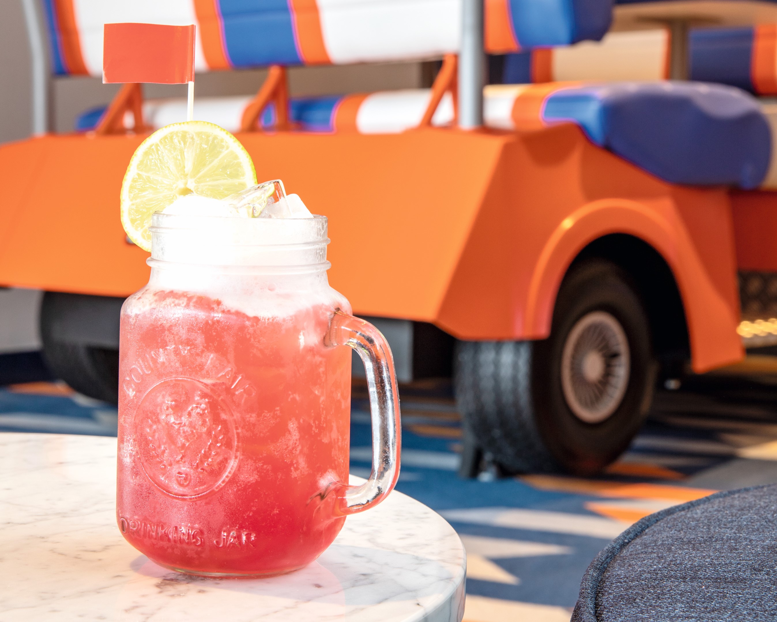 Themed cocktails aren’t all this clubhouse-inspired bar brings to the table. You can take up a seat in a golf buggy, or tee off on one of two golf simulators for a charge