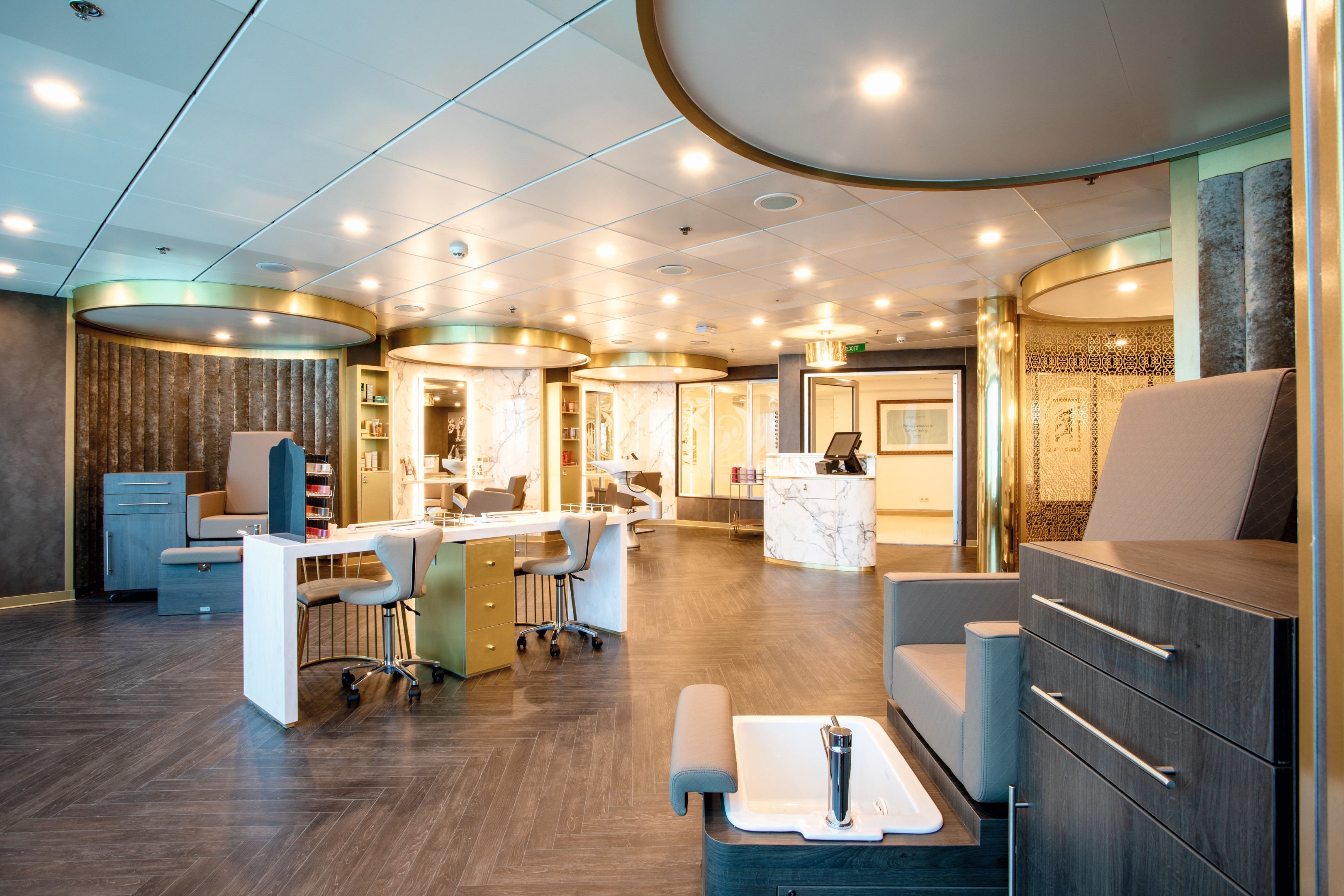 At this state-of-the-art spa you can book in for treatments, like facials, body wraps and massages, plus there’s a beauty salon. The spa doesn’t scrimp on size. In fact, it’s the biggest in the fleet – packing in a relaxation room, made-for-two suites and treatment cabins with hot tubs. There’s also an adults-only sauna with floor-to-ceiling windows and a steam room. Just so you know, there's a charge for treatments and use of the facilities.