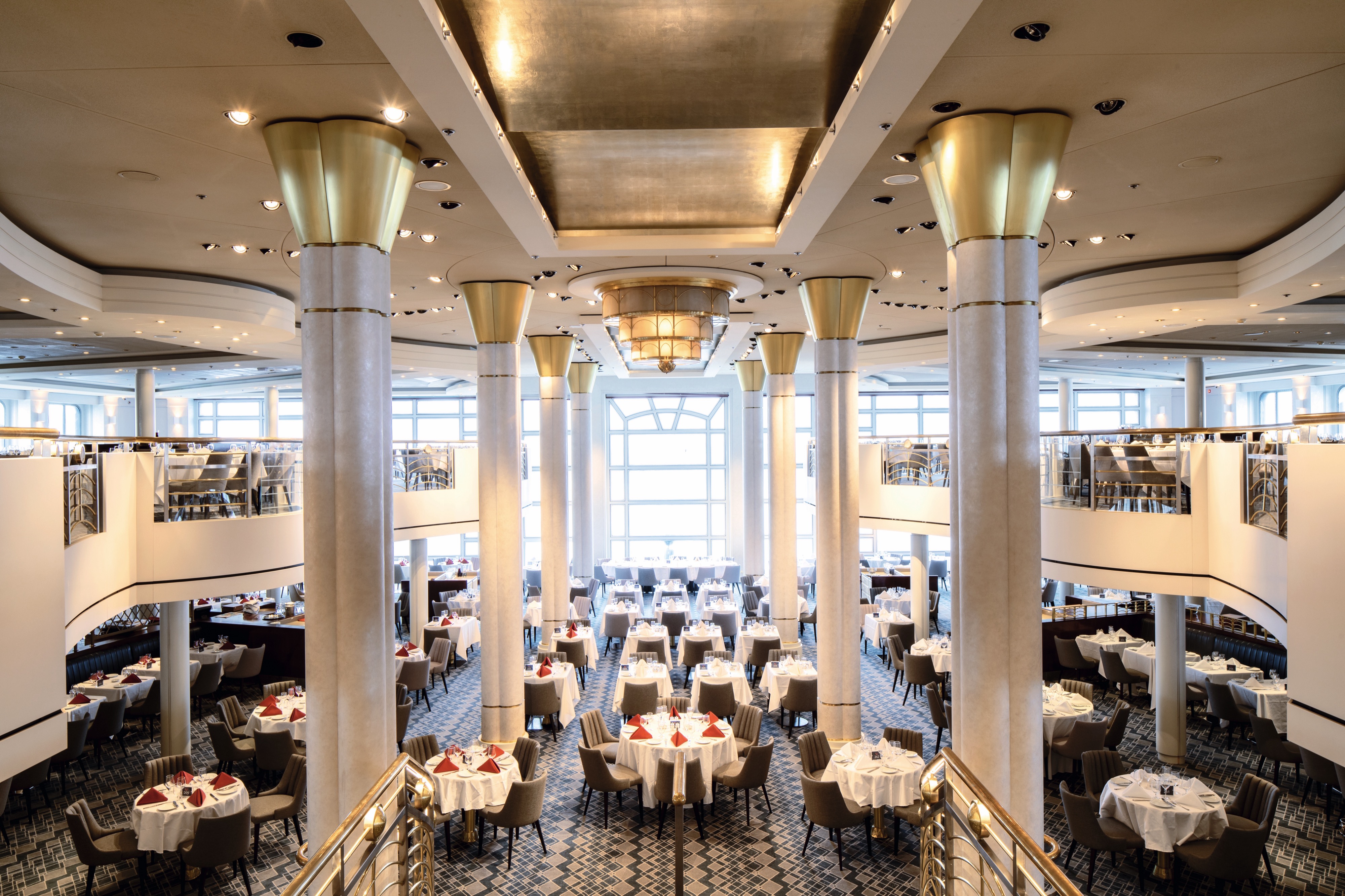 The Dining Club, tucked away on Deck 5, rustles up French contemporary food with a modern twist. We’ve taken French staples up a notch – you'll start your dining experience with seared scallops in Champagne butter, or chicken liver and truffle crème brûlée. Then, for the main course, you can pick from a rich chateaubriand for two, tender lamb, or lobster. You’ll end your meal with something sweet – a peach soufflé and an indulgent chocolate dish are on the menu. Or, you could opt for a curated selection of British and French cheeses.