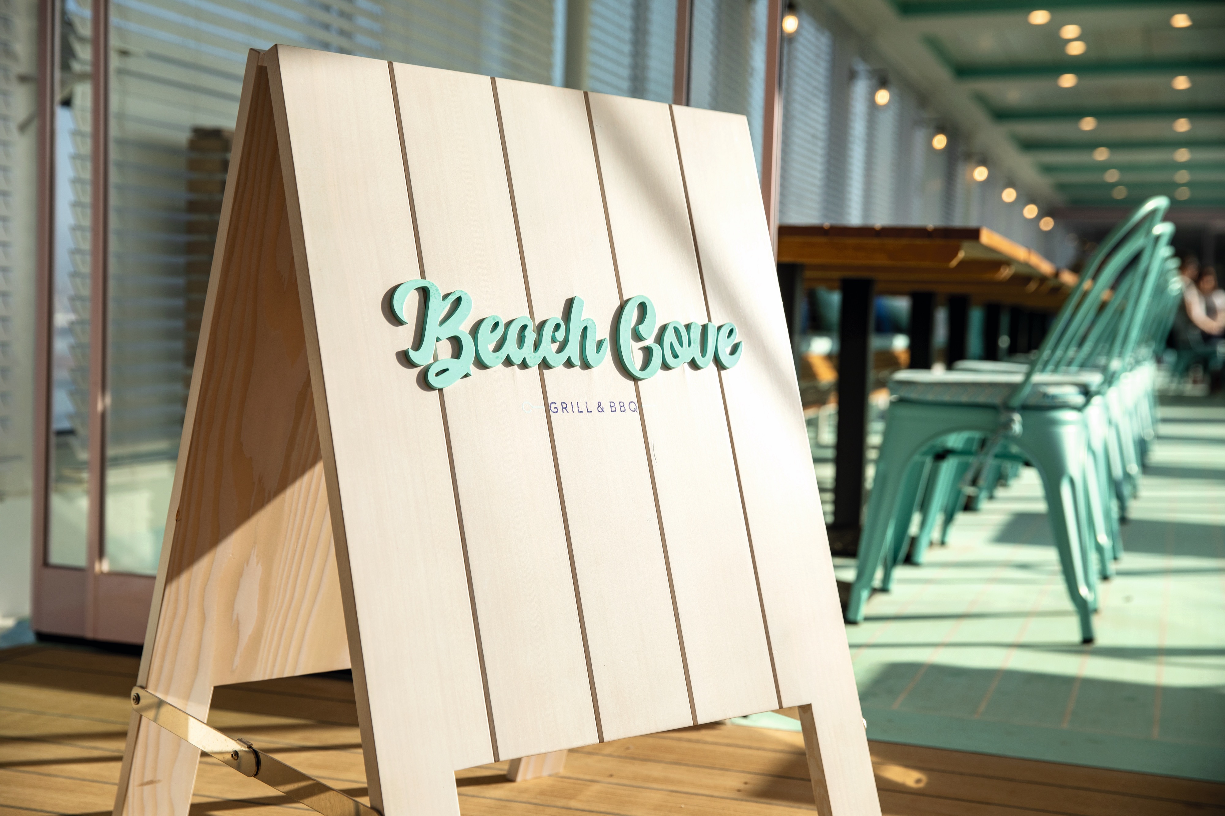 Food stalls, beach huts and oversized deckchairs set the scene at this laidback eatery. As such, you can look forward to grab ‘n’ go lunches and snacks. There’s a drinks station on hand, too. Feel free to wear your beachwear here.