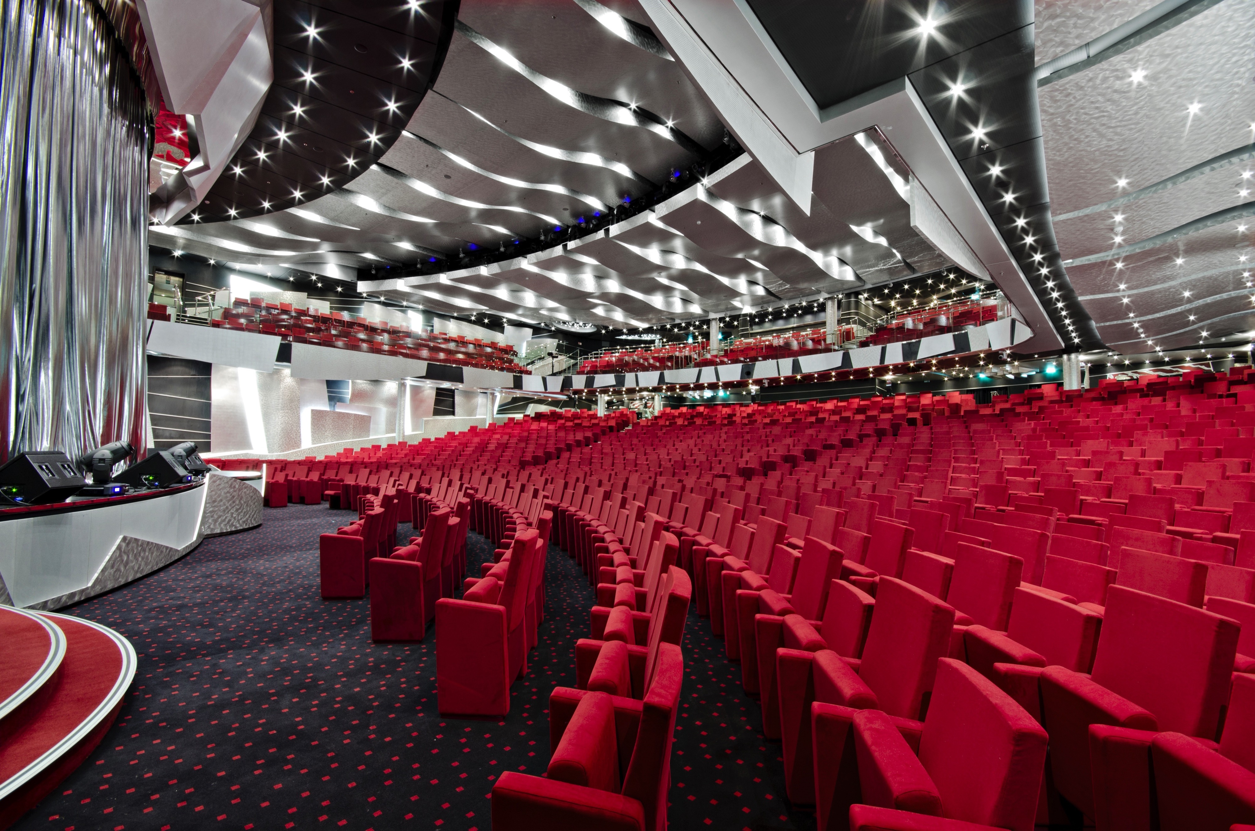 Two decks high and located on decks 6 and 7, it features Broadway style shows, illusionists, dancing on ice shows and circus extravaganzas.