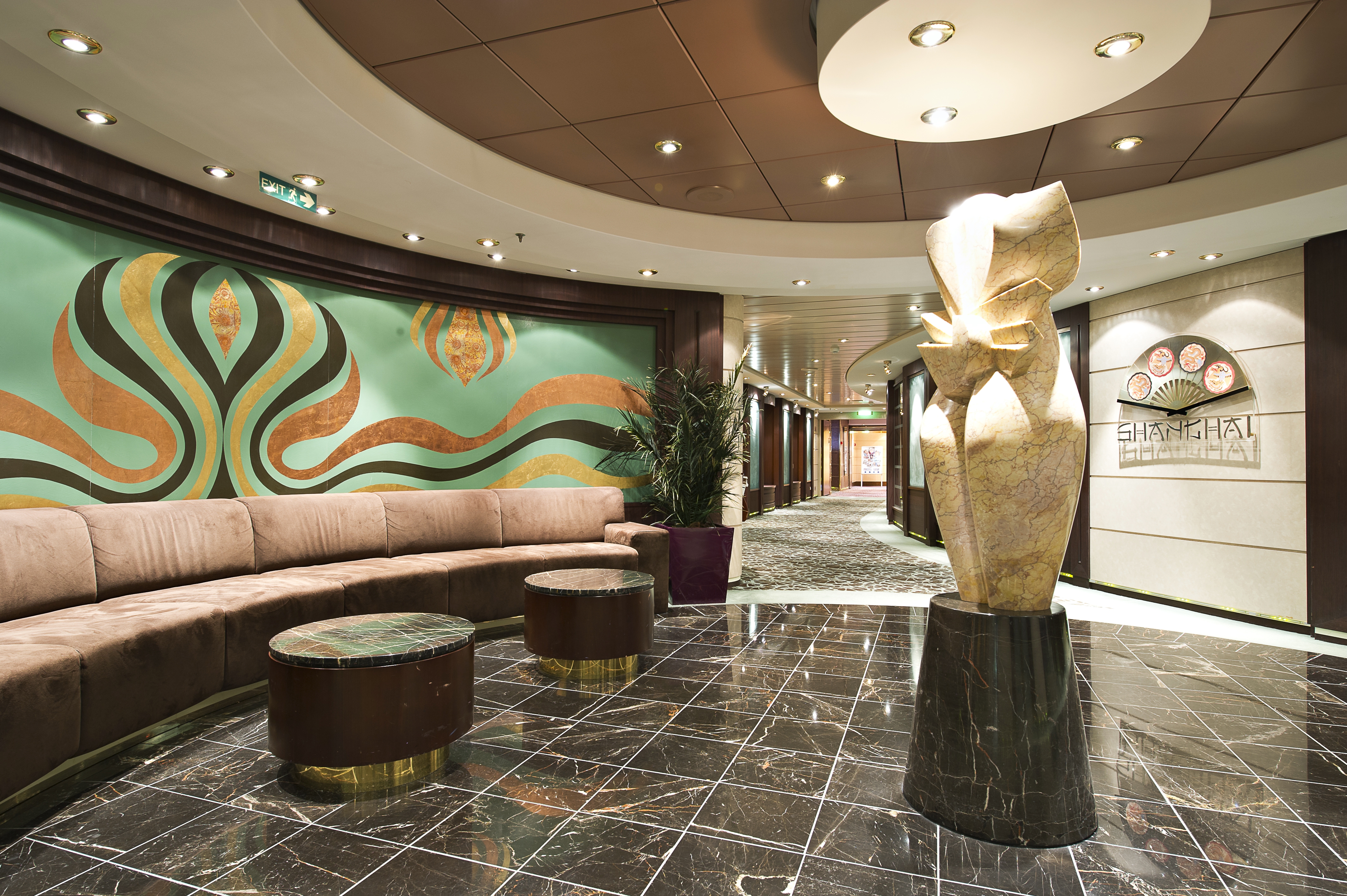 The Shaker Lounge is located on deck 7 of the Orchestra and has its own bar and dance floor along with seating for 330 guests.