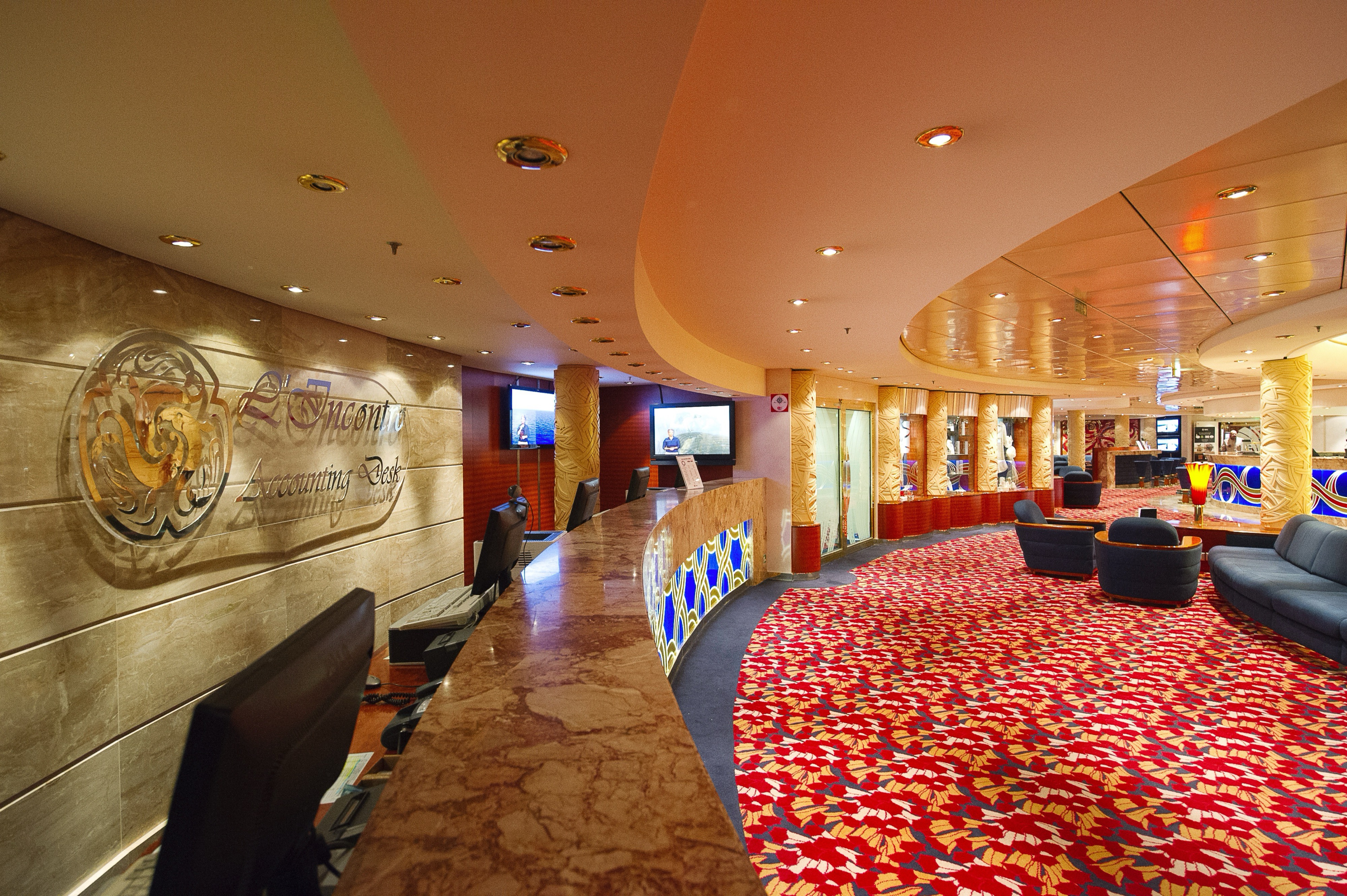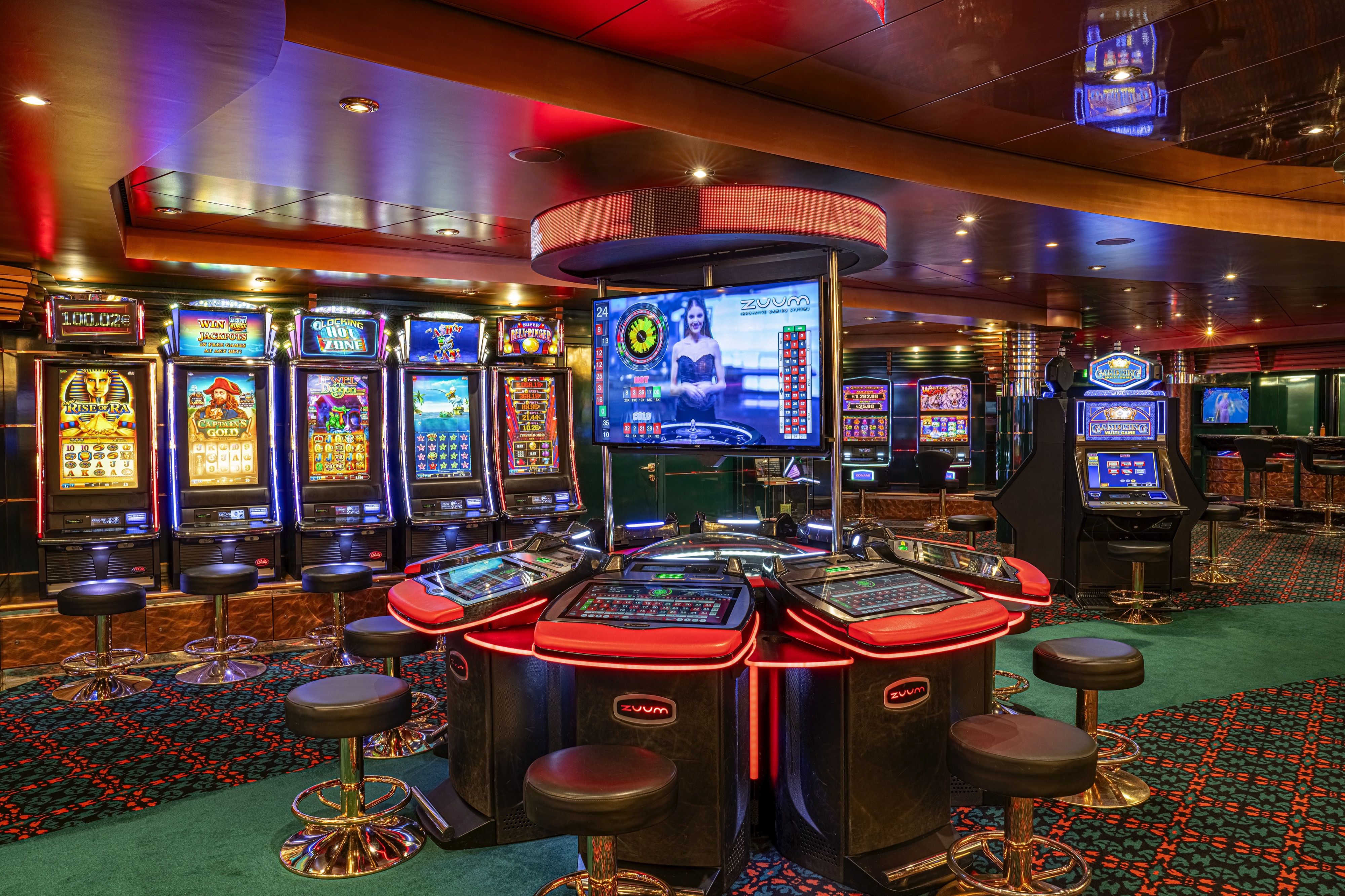 The ship's 630 square meter casino, situated on deck 7 accommodating 222 guests. It is served by its own bar and features games from roulette and blackjack to poker and slot machines. The Casino is open to over 18’s only.