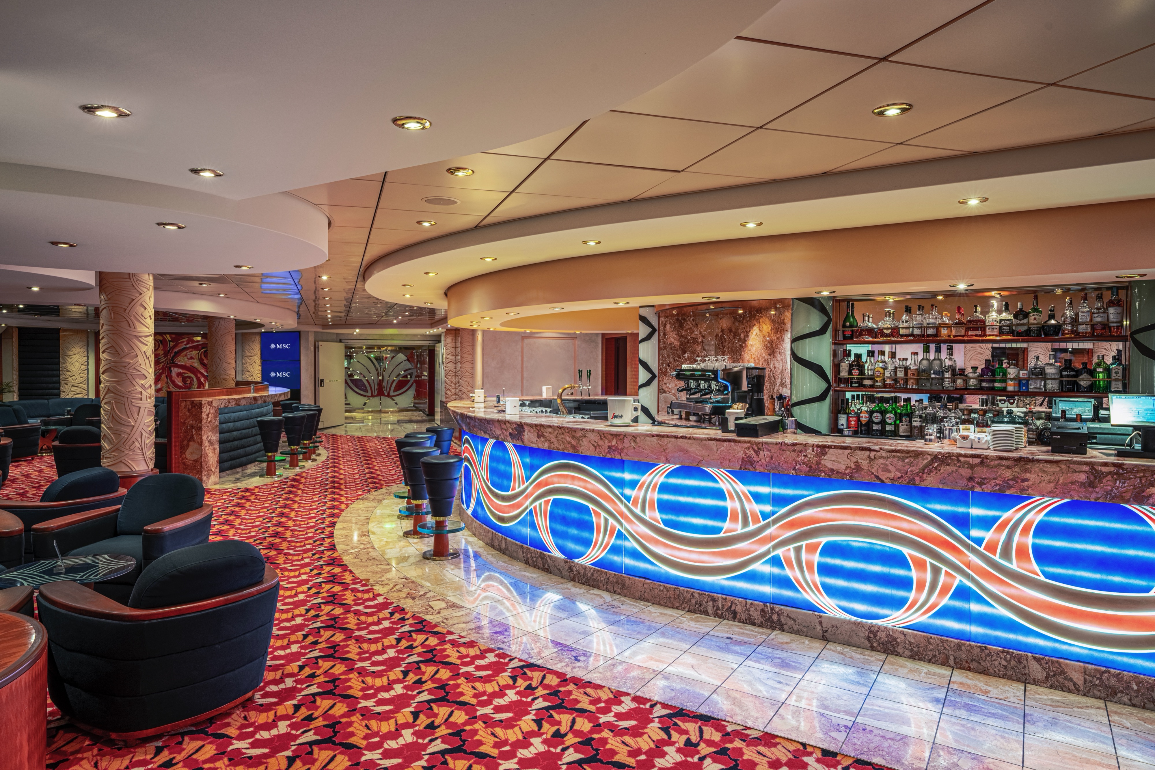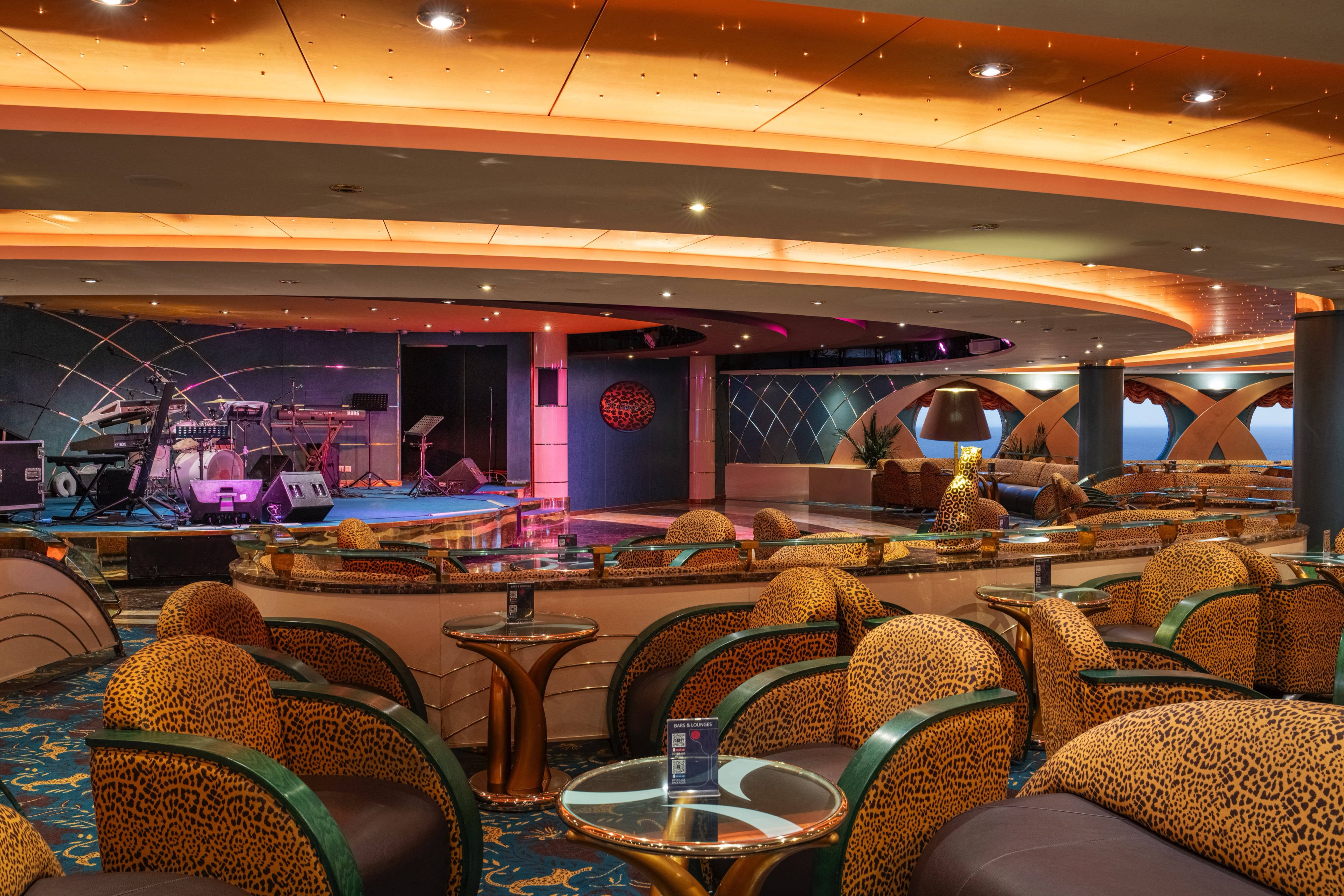 The Savannah Bar is the ship's second show lounge served by its own bar and dance floor.