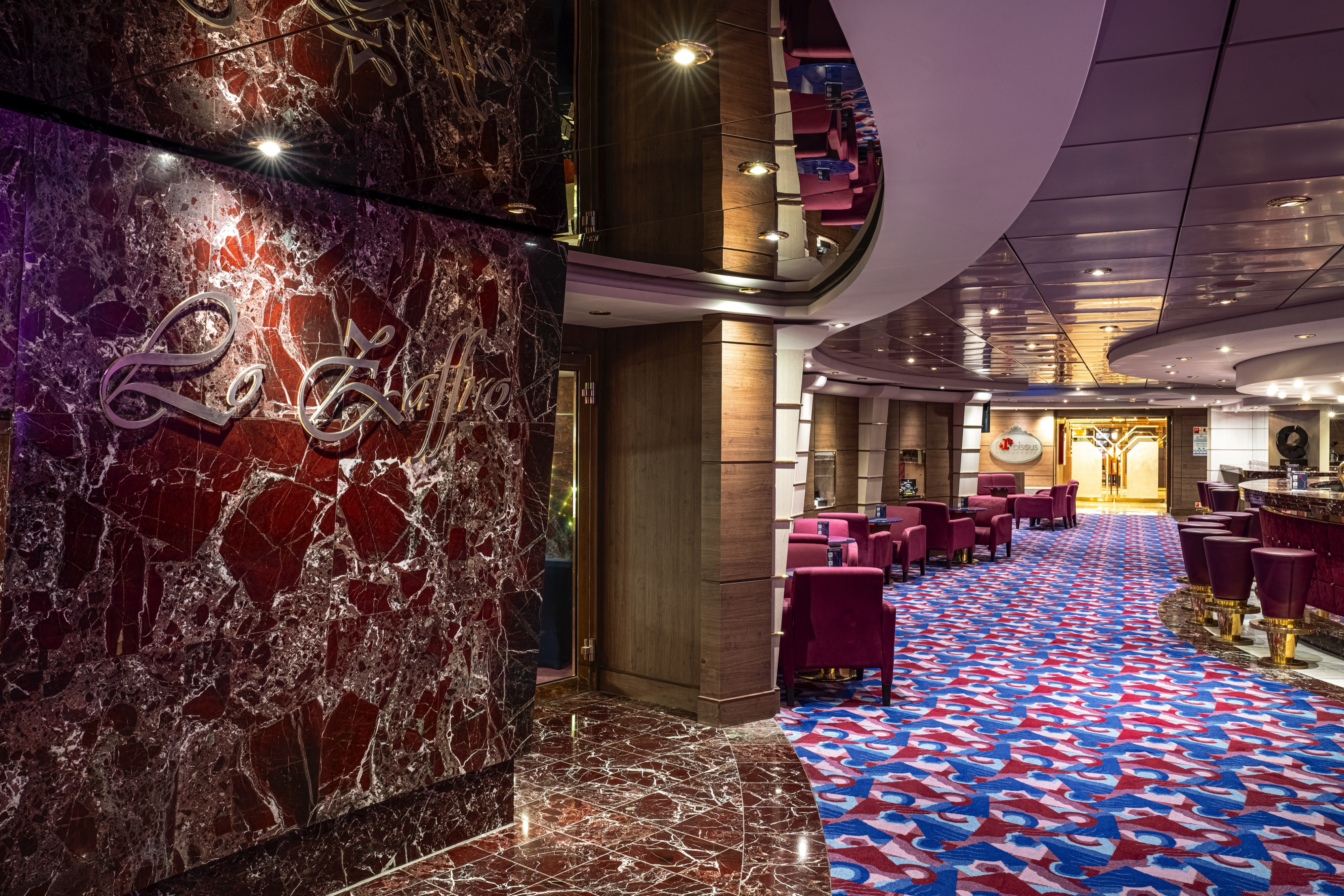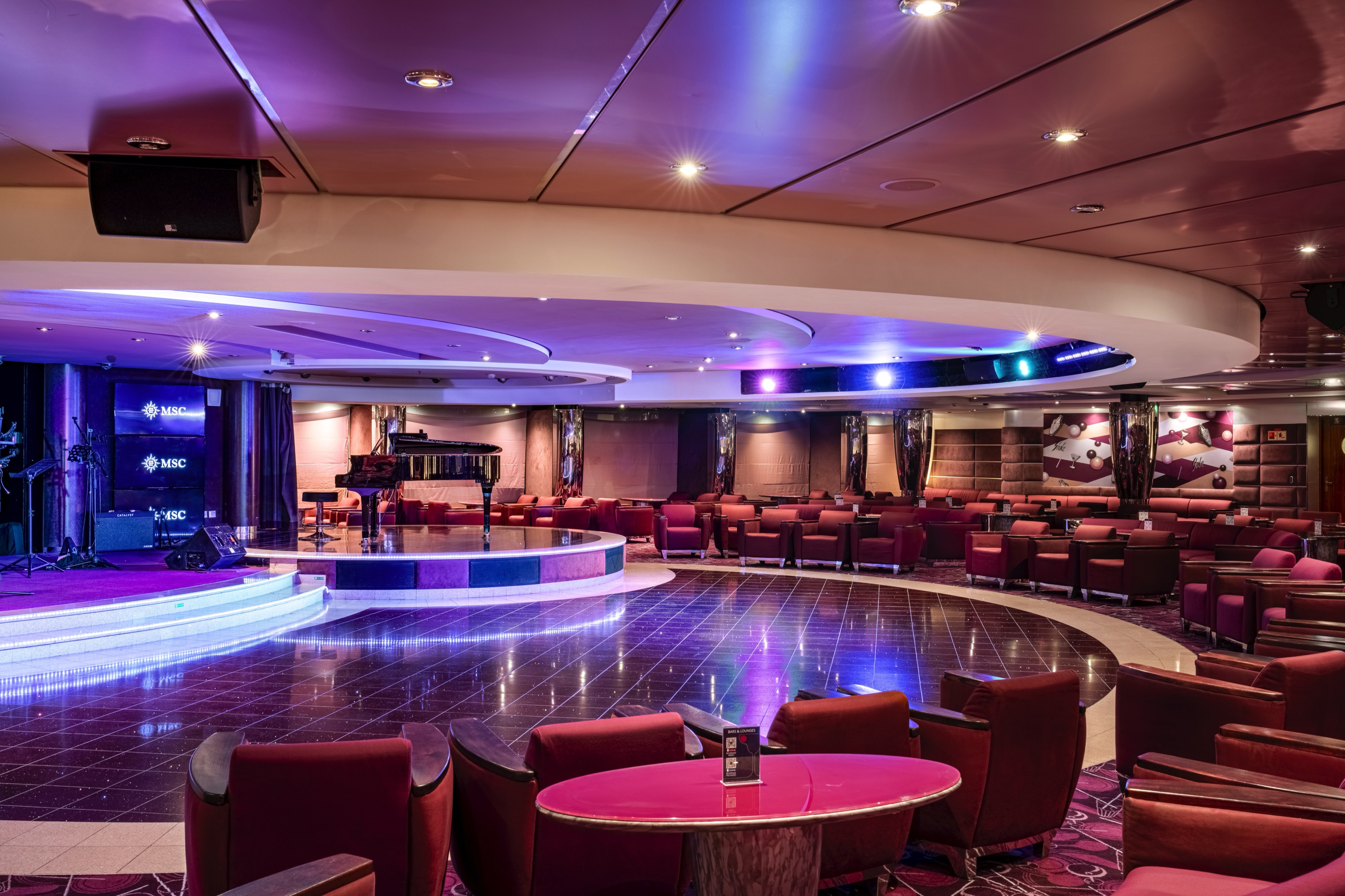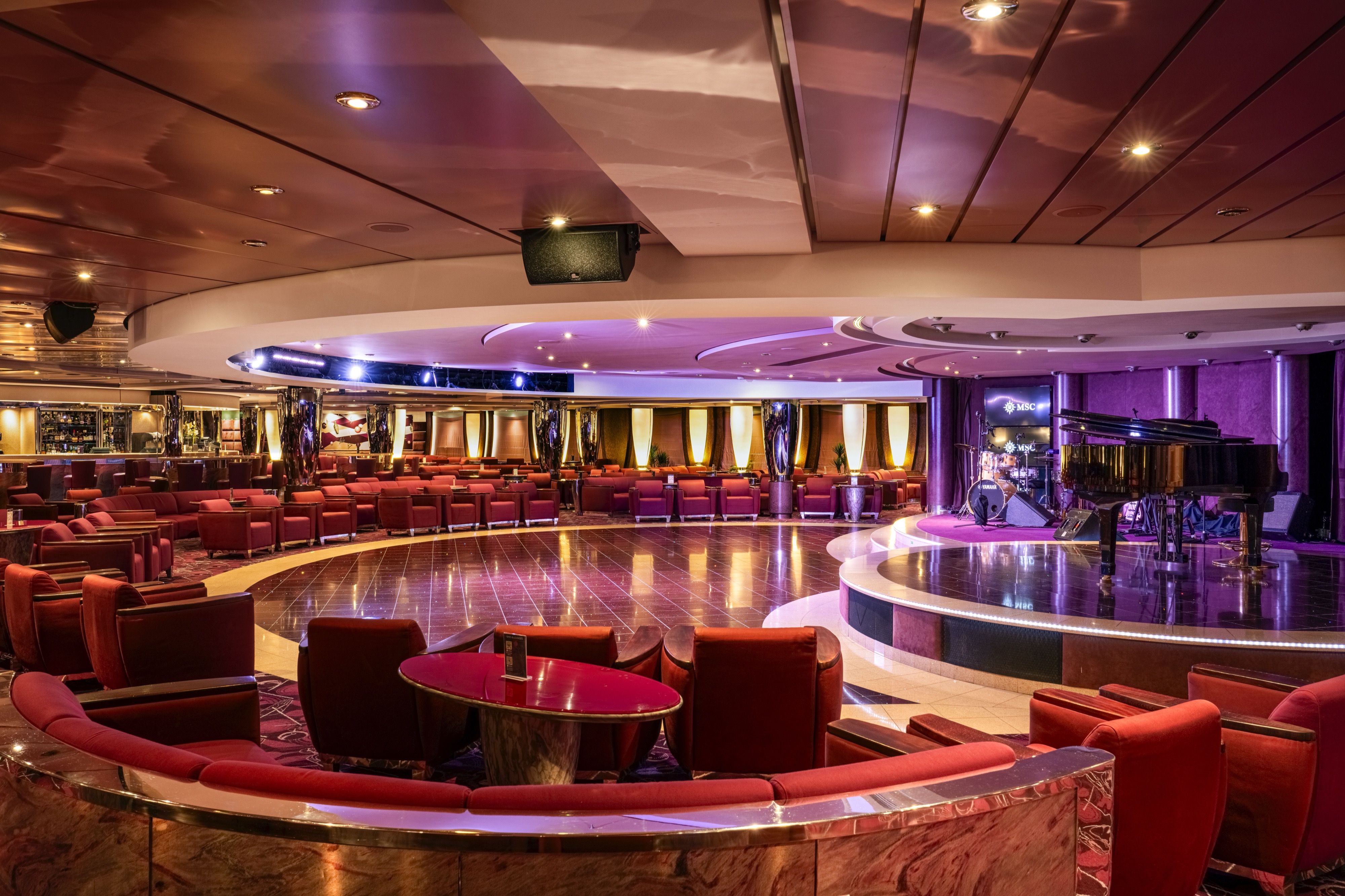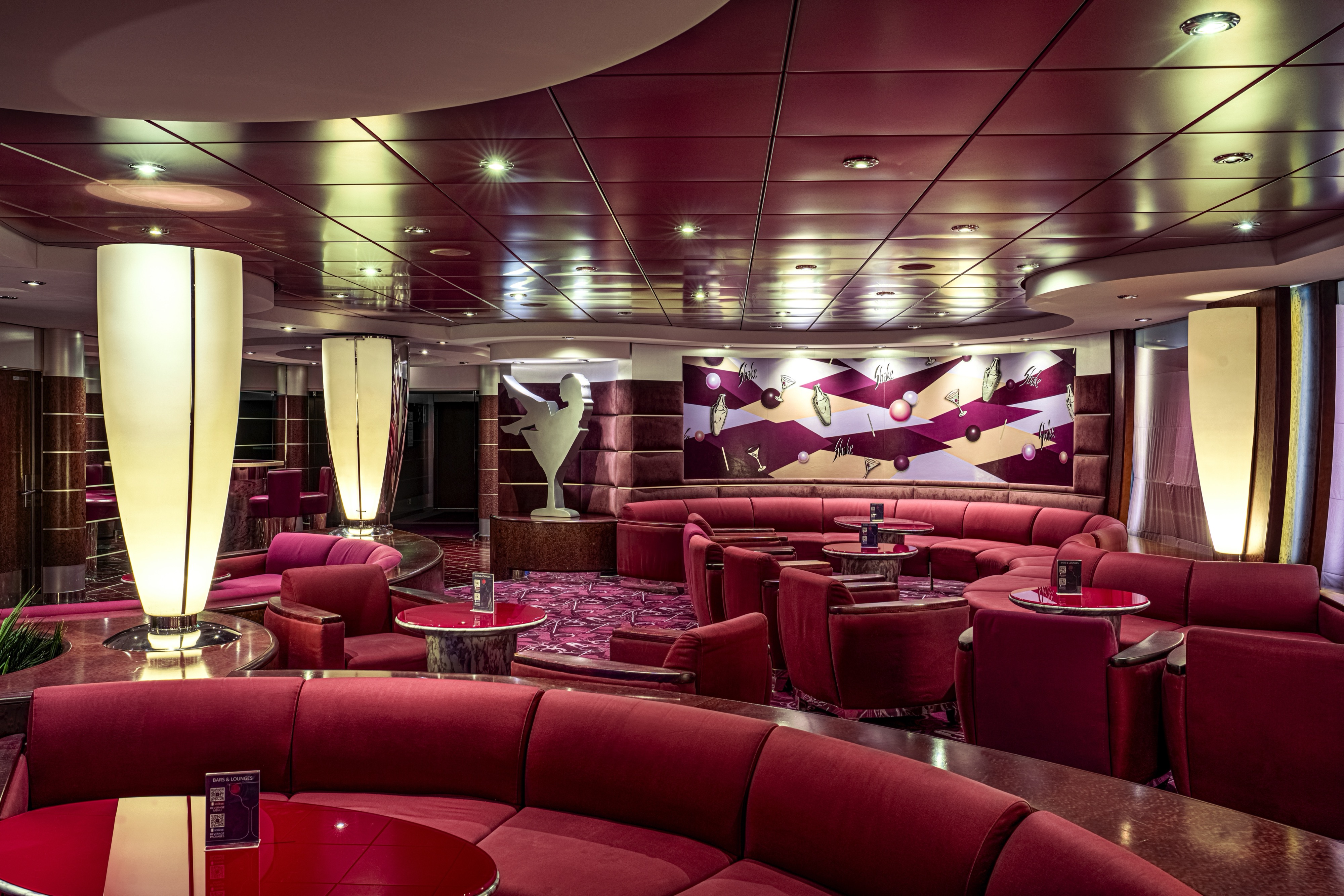 With a live DJ and open from 11.00pm until late, the ship's disco located on deck 14 and served by its own bar. It has seating for 172 guests.