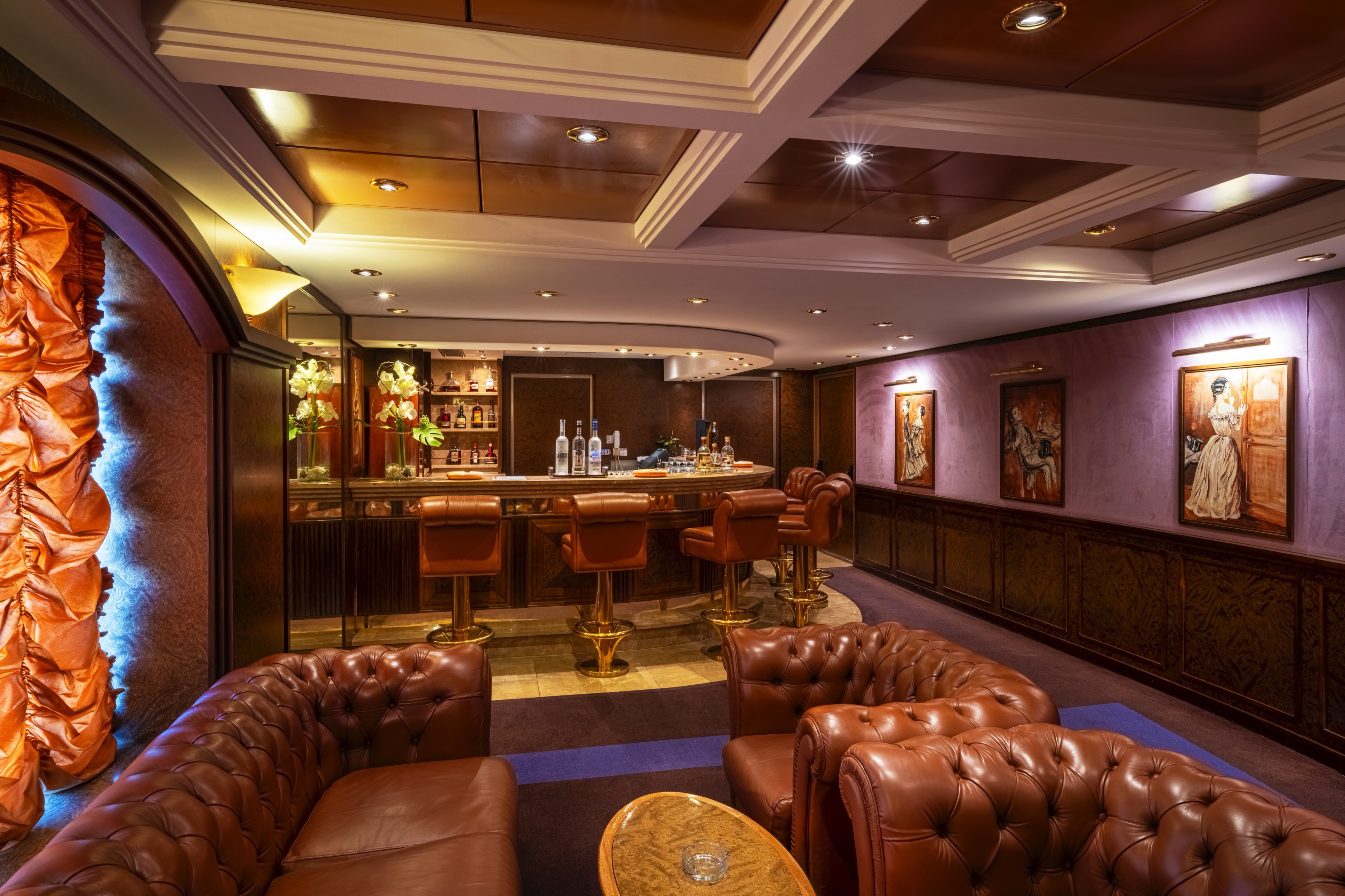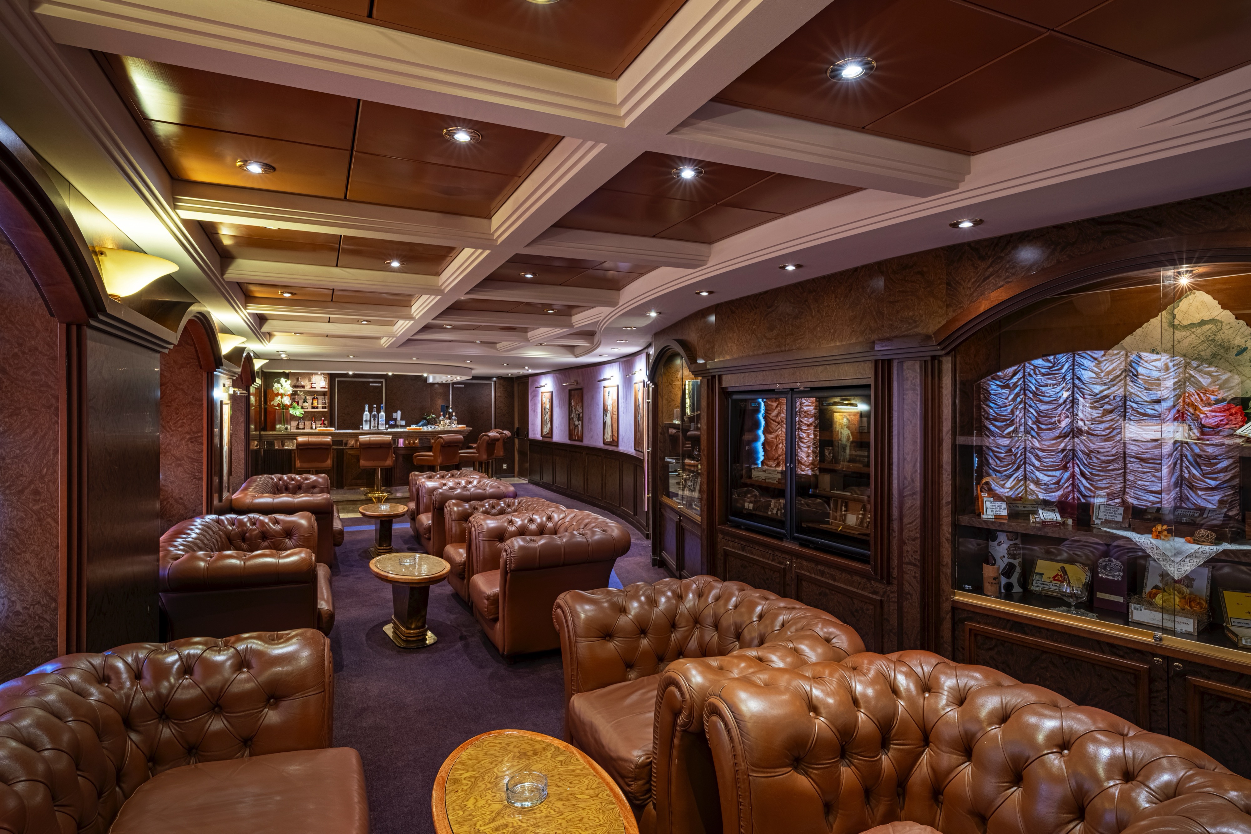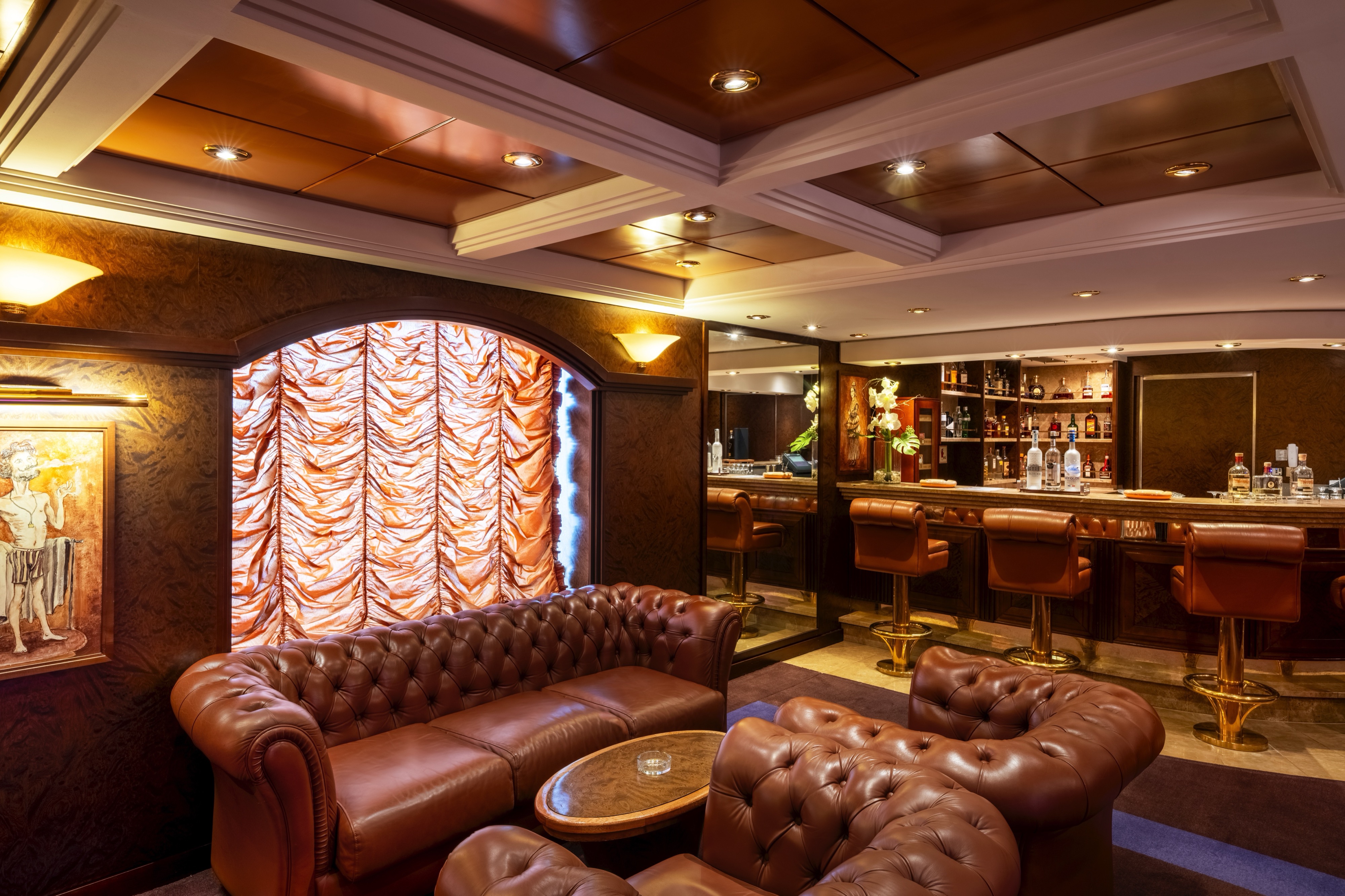 The ship's smoking room and whiskey bar is situated on deck 7 and seats 32 guests.