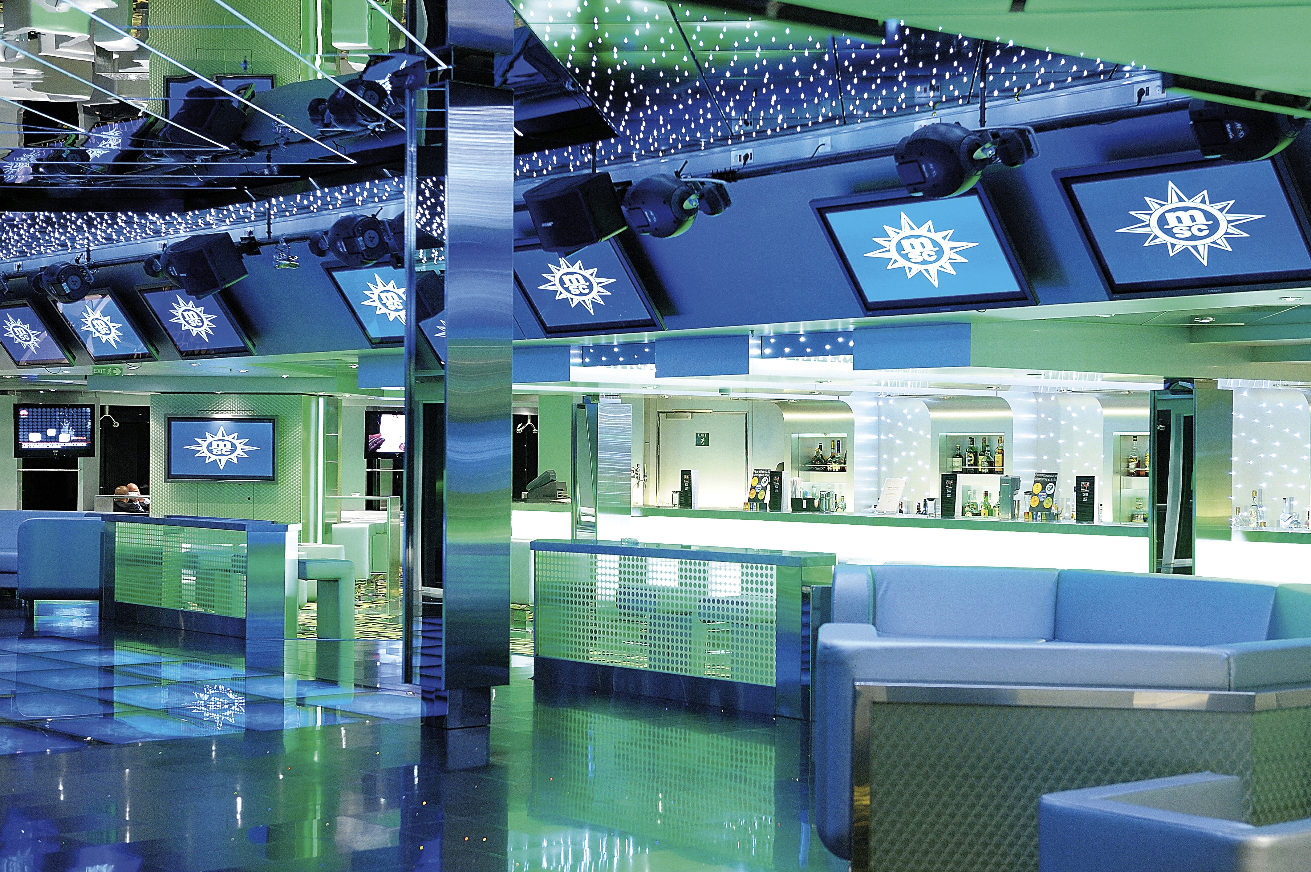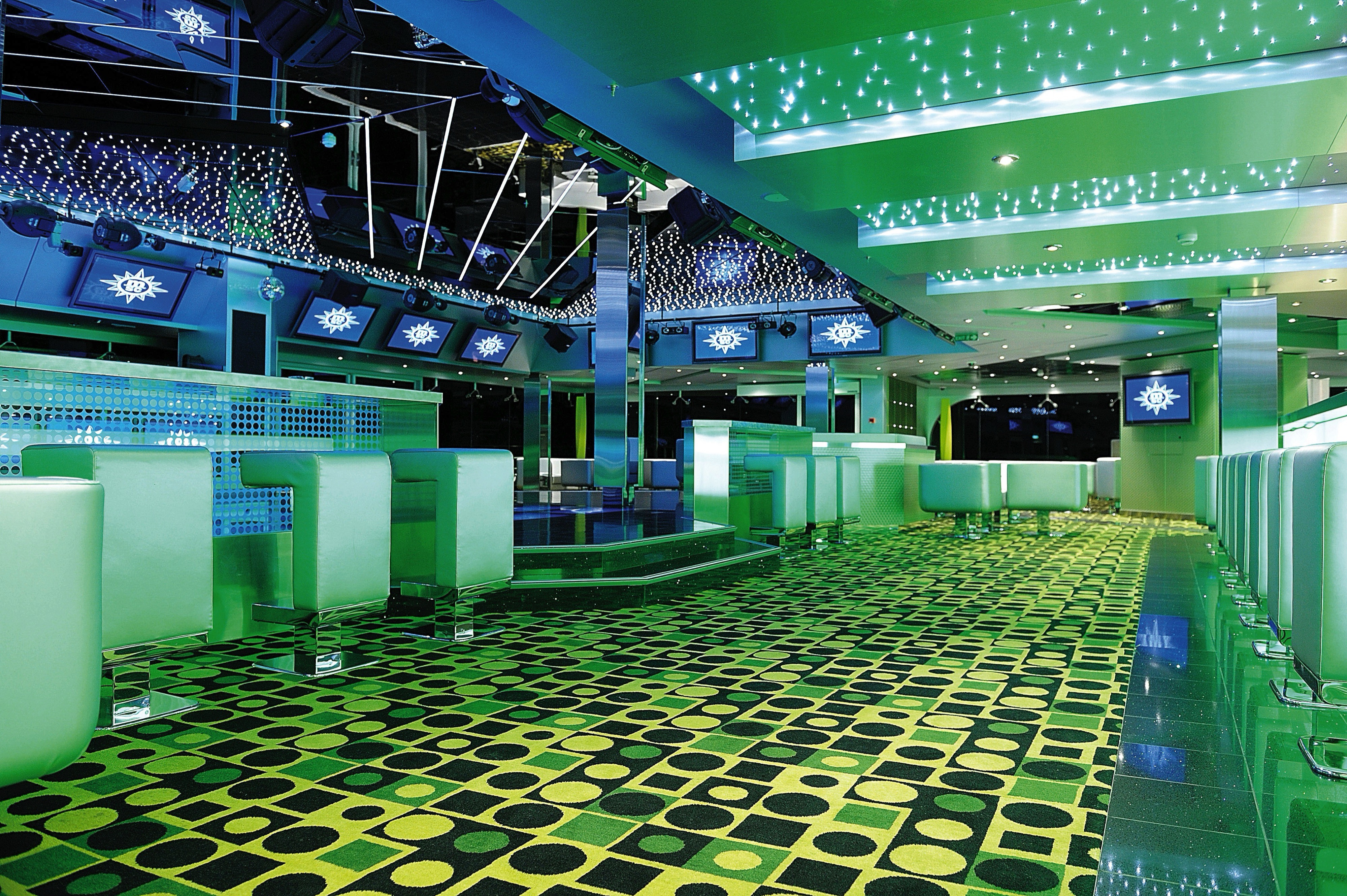 With a live DJ and open from 11.00pm until late, the ship's disco located on deck 14 and served by its own bar. It has seating for 172 guests.