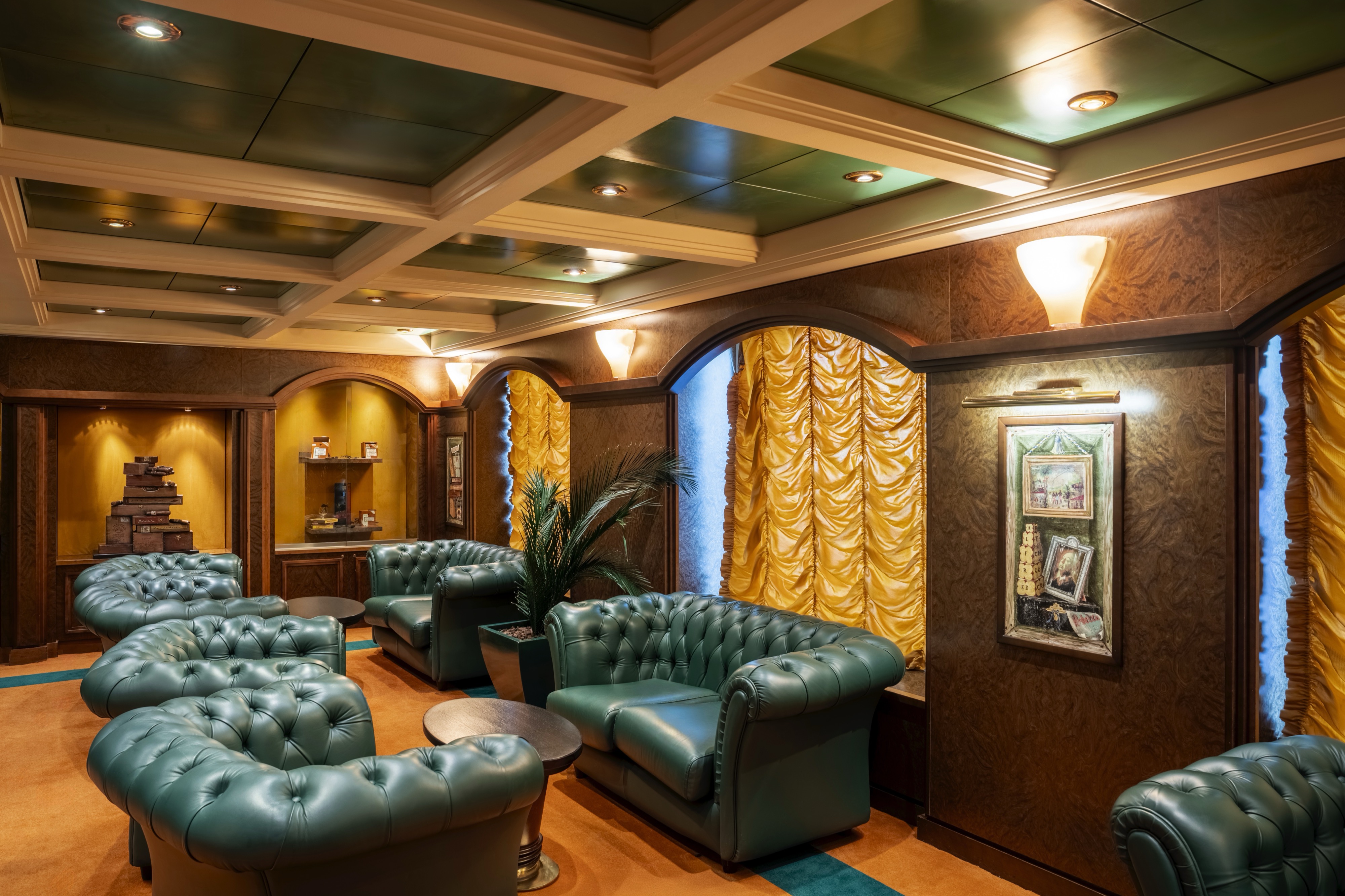 The ship's smoking room and whiskey bar is situated on deck 7 and seats 32 guests.