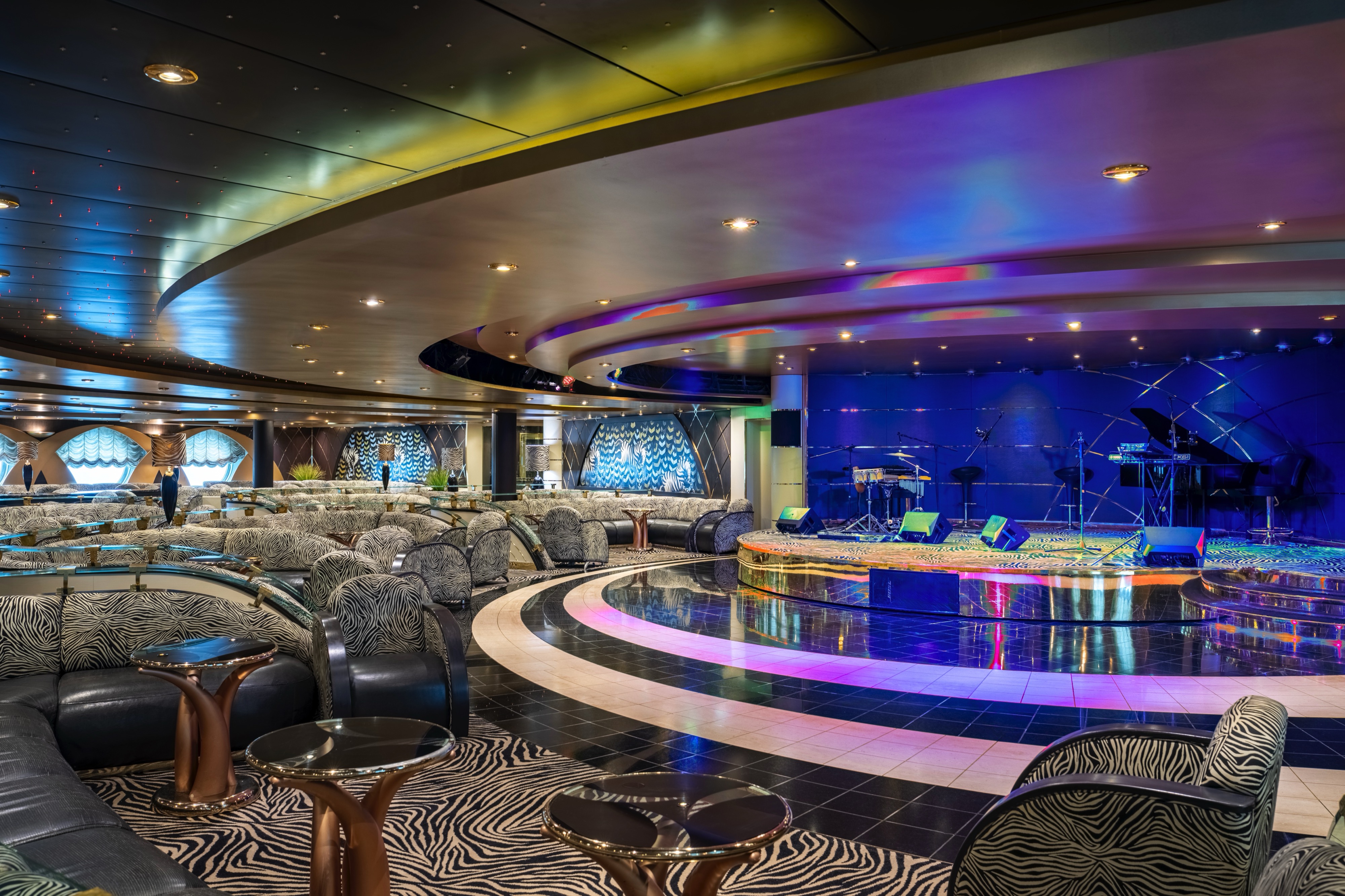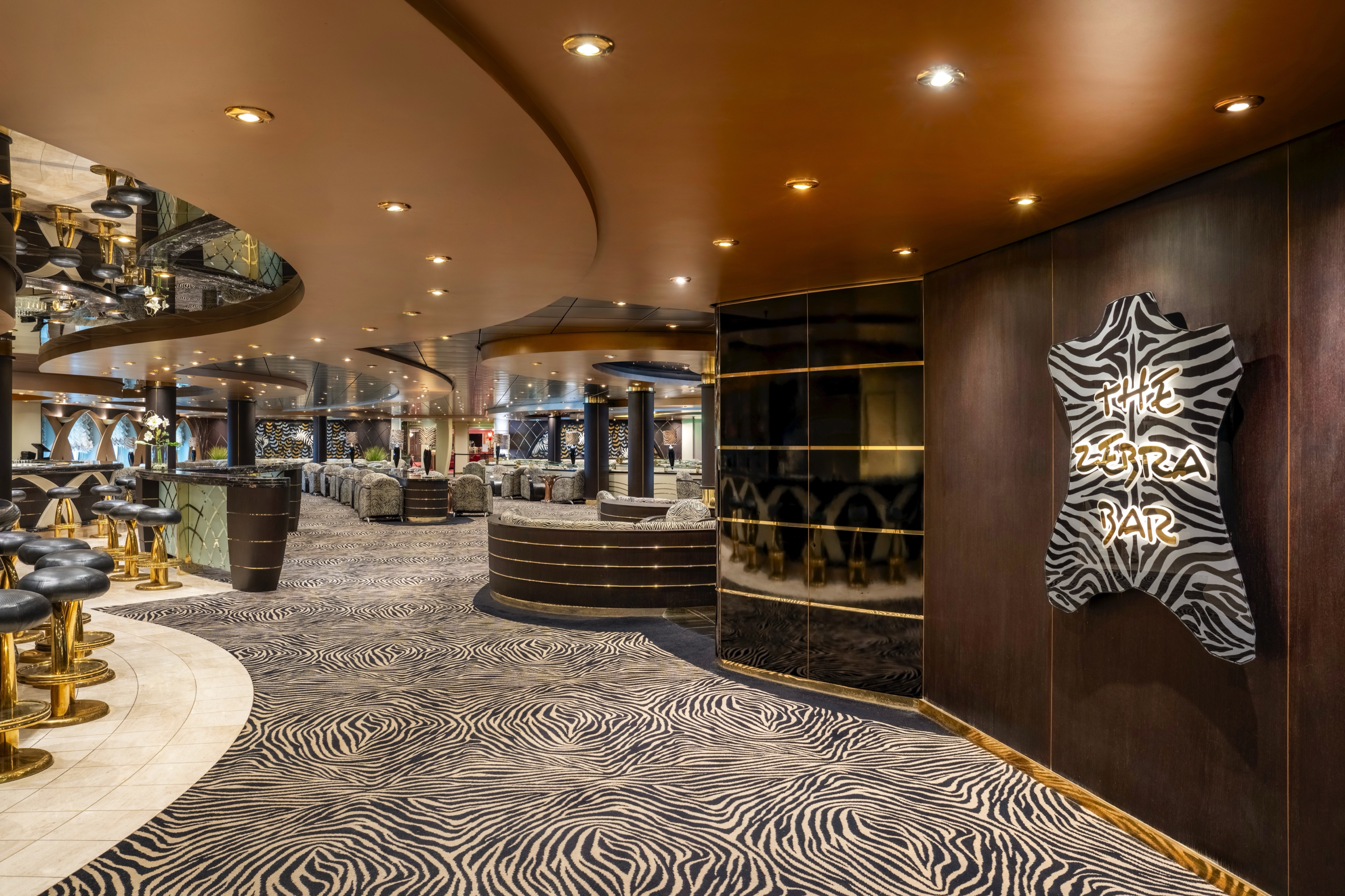 The Zebra Bar is the ship's second show lounge served by its own bar and dance floor.