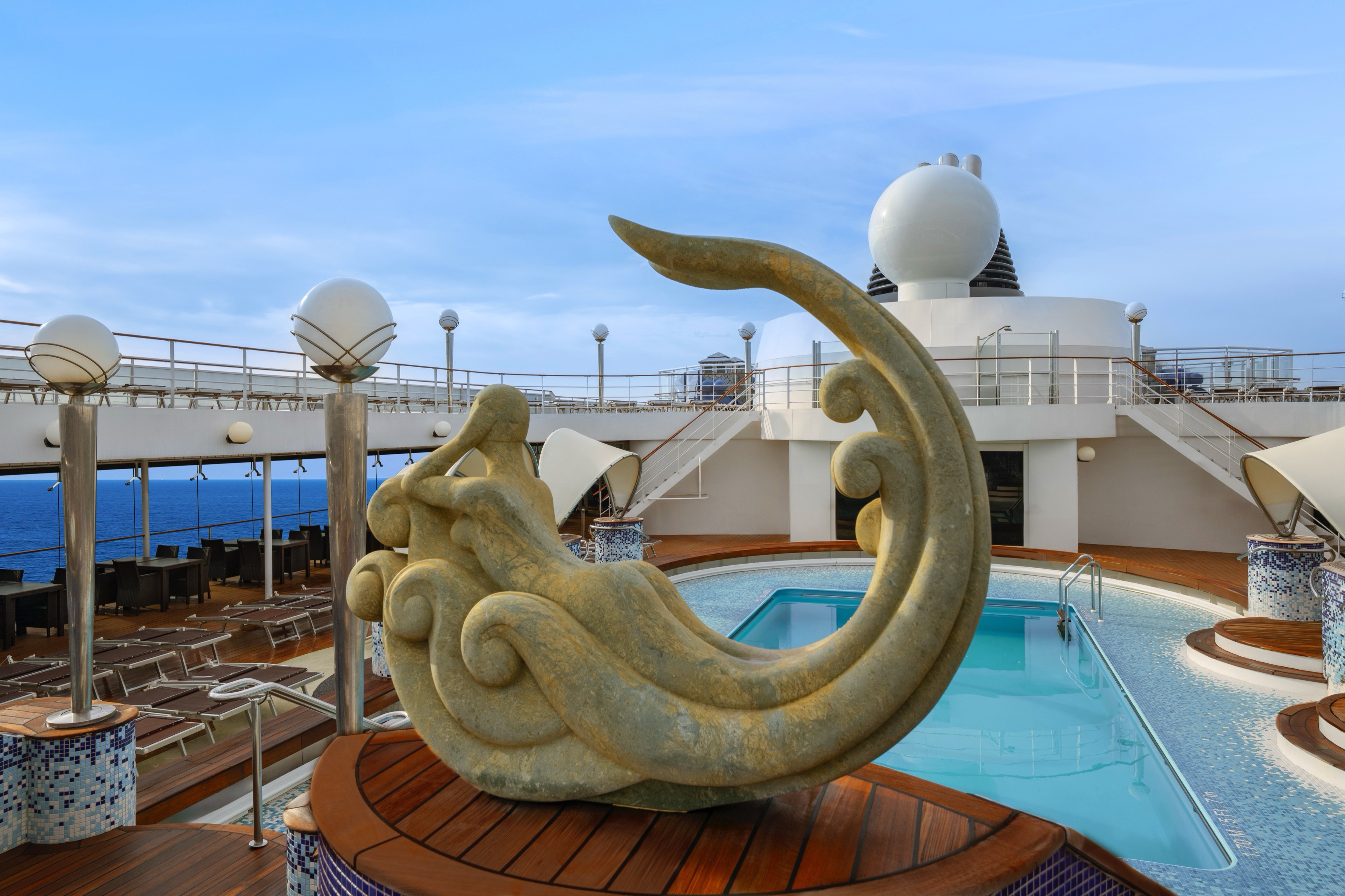The superb amenities on board include 3 swimming pools, 4 whirlpool baths and a giant poolside cinema screen.