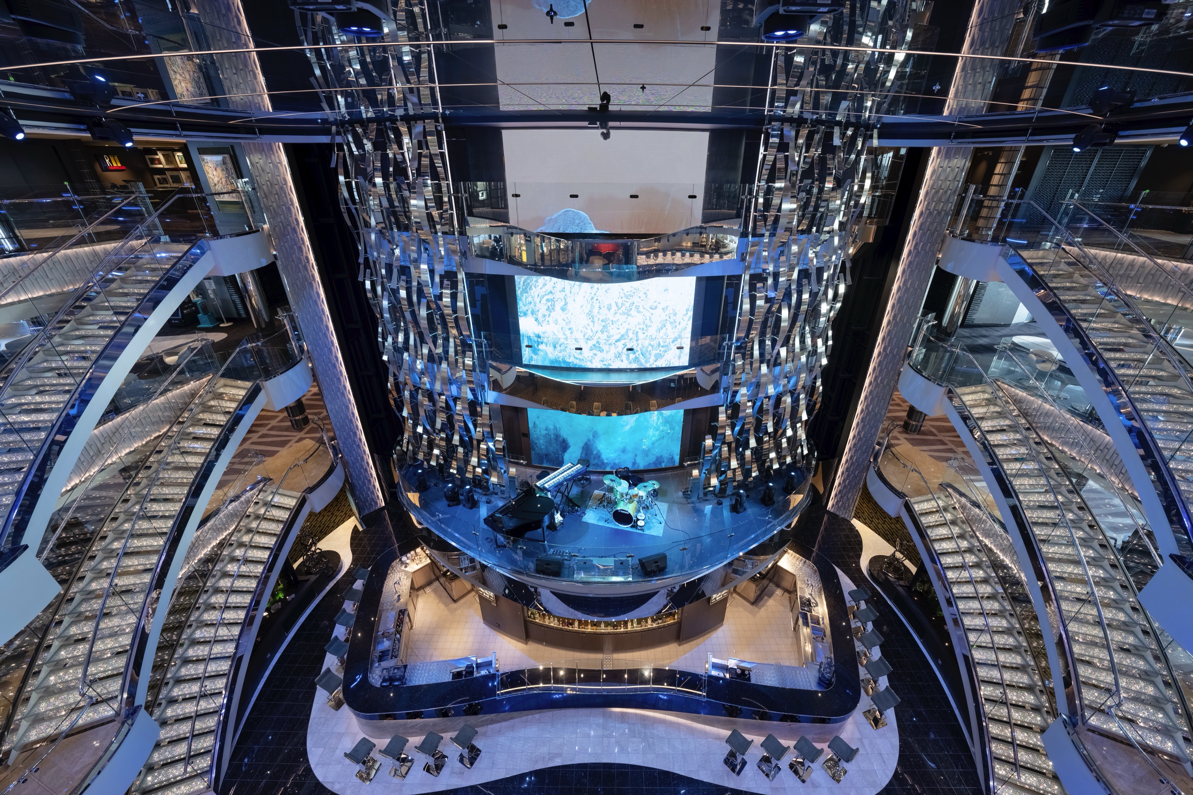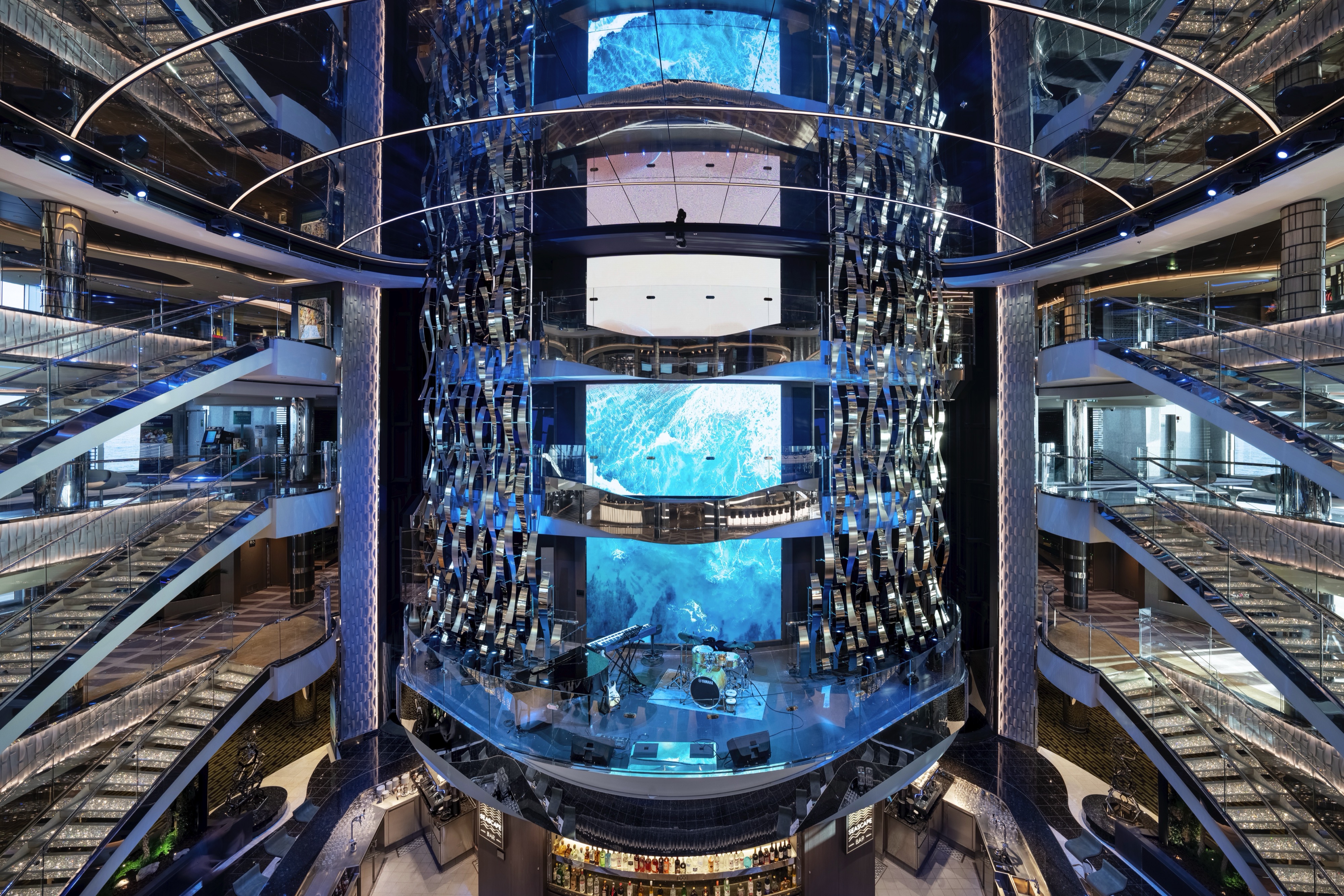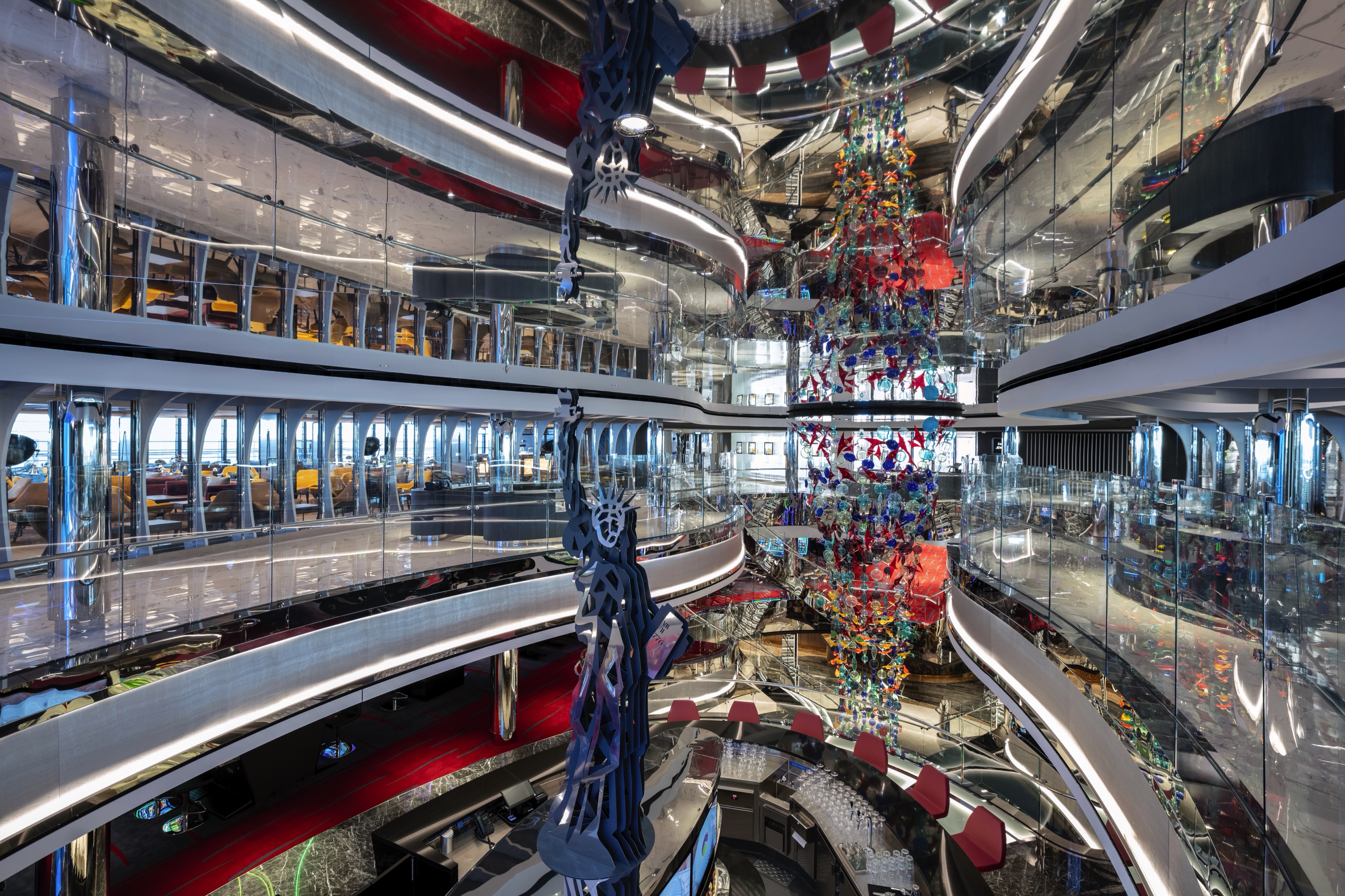 The sculpture rises from deck 5 through to deck 8, it sends a powerful message of care for the sea and our planet to thousands of voyagers every year, evoking the beauty and fragility of sea.