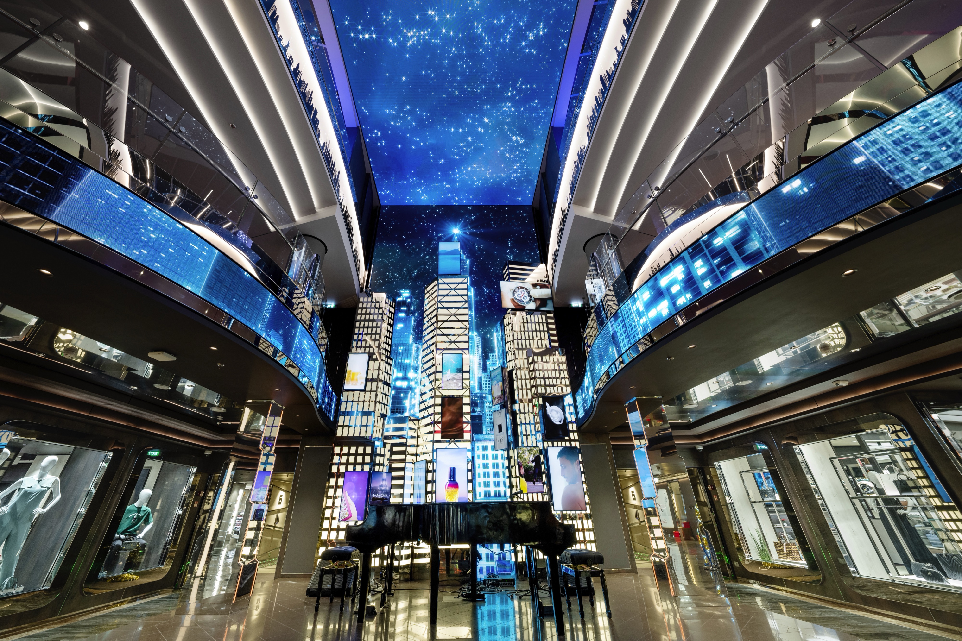 MSC Seascape pays tribute to New York City, which as a destination represents the spirit of discovery and cultural experiences that is at the heart of the MSC Cruises guest experience. As such, the design features, public areas and venue names are inspired by the metropolitan U.S. city. These include an imposing three-metre-high replica of the Statue of Liberty at the heart of the casino and a newly designed expansive retail and entertainment area, aptly named Times Square. The main feature of this new area is an impressive 8.5 metre-high LED wall spanning four decks with a projection of the iconic skyline of this entertainment hub in Manhattan that can change from day to night.