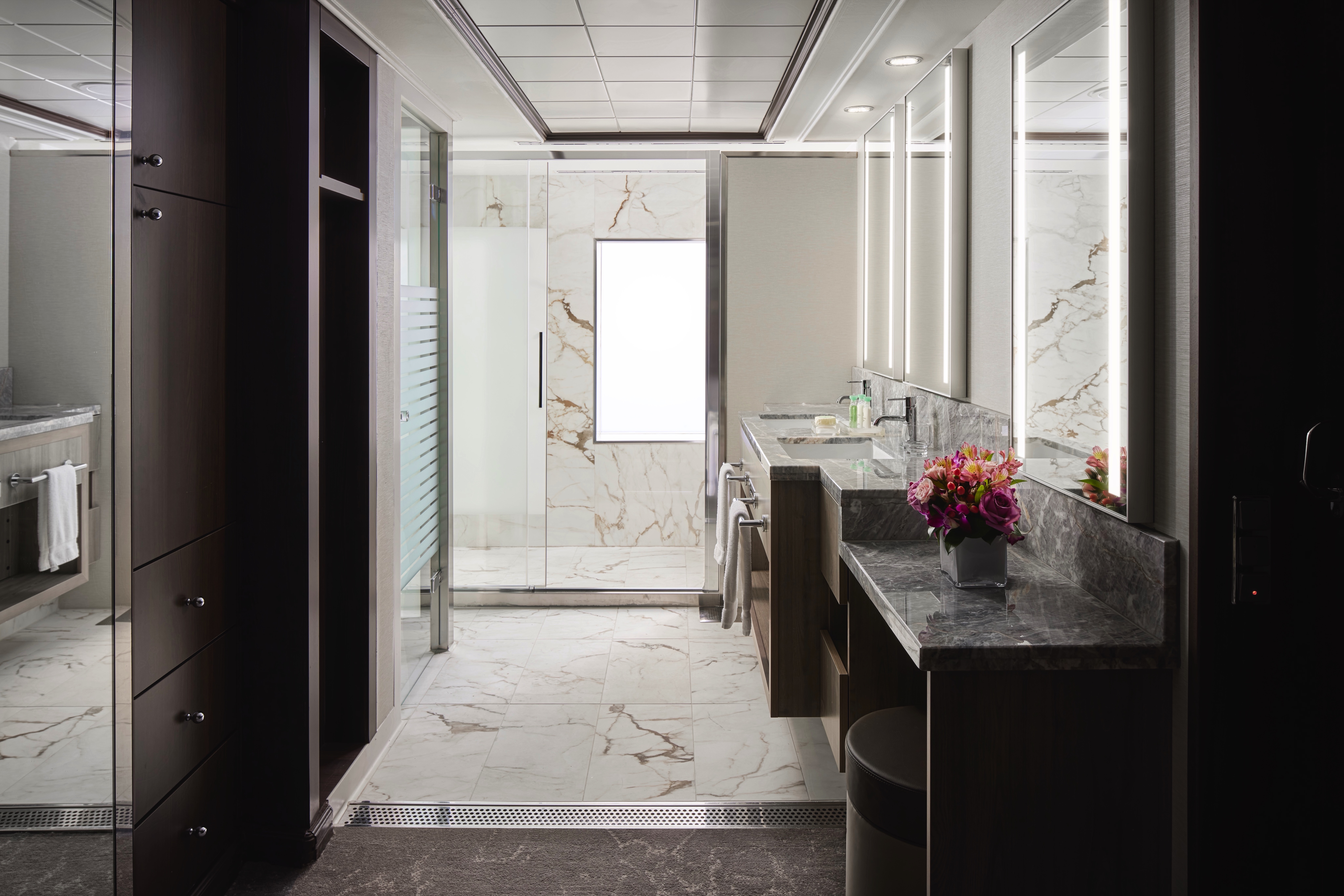 Indulge in supreme comfort and luxury in these Owner's Suites featuring a separate bedroom with a king-size bed, a double sofa-bed, luxury bath with a separate shower, as well as a guest bath. Also includes a living room and dining room and fabulous views from two private balconies, plus access to the private courtyard and butler and concierge service. They also can connect to either a Penthouse or Balcony stateroom so you can spread out in style.