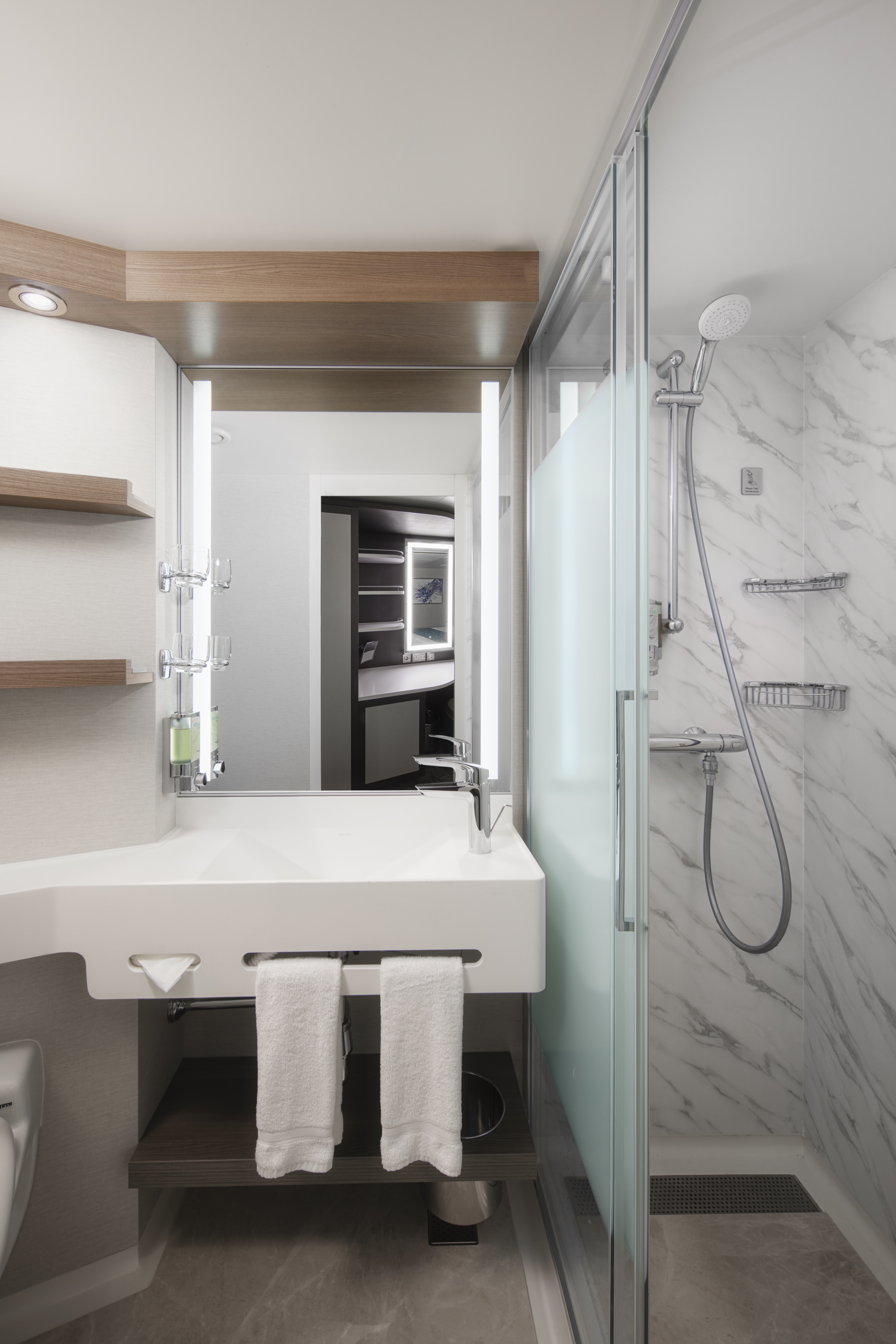 Balcony staterooms come with two lower beds that convert into a queen-size bed, with some featuring one pullman or one single sofa-bed to accommodate an additional guest. Also includes a sitting area and floor-to-ceiling glass doors that open to a private balcony. Some can connect, a great option when travelling with family or friends.
