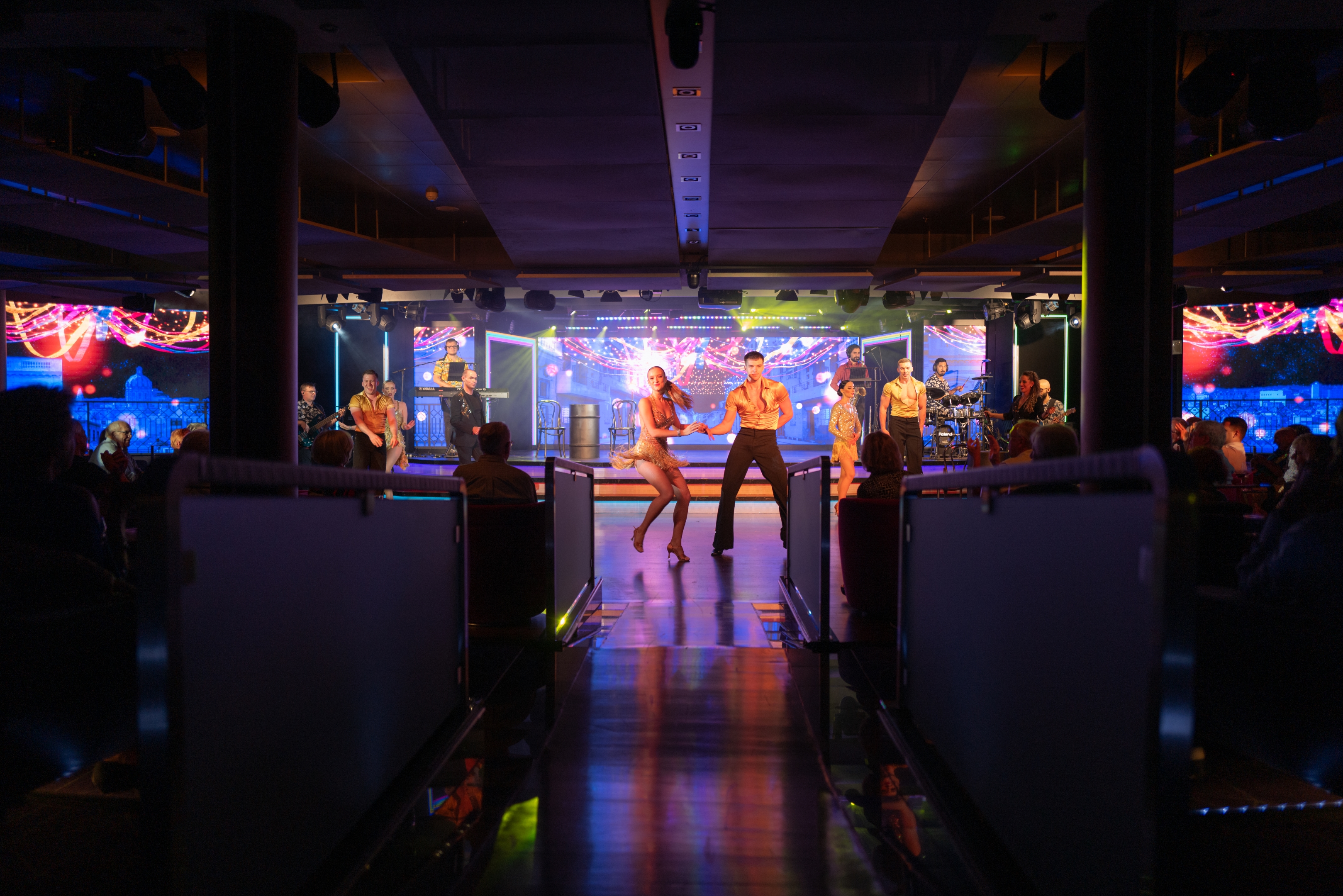 Weather permitting, this high-energy dance party is hosted poolside and under the stars by the entire entertainment team, featuring performances by The Band, vocalists and dancers. There is even the possibility your Cruise Director and Assistant Cruise Director might jump on stage to perform, as well! Guests can expect music that appeals to everyone’s taste with a great mix of hit songs. It’s a real treat and guests LOVE Evenings Under the Stars!