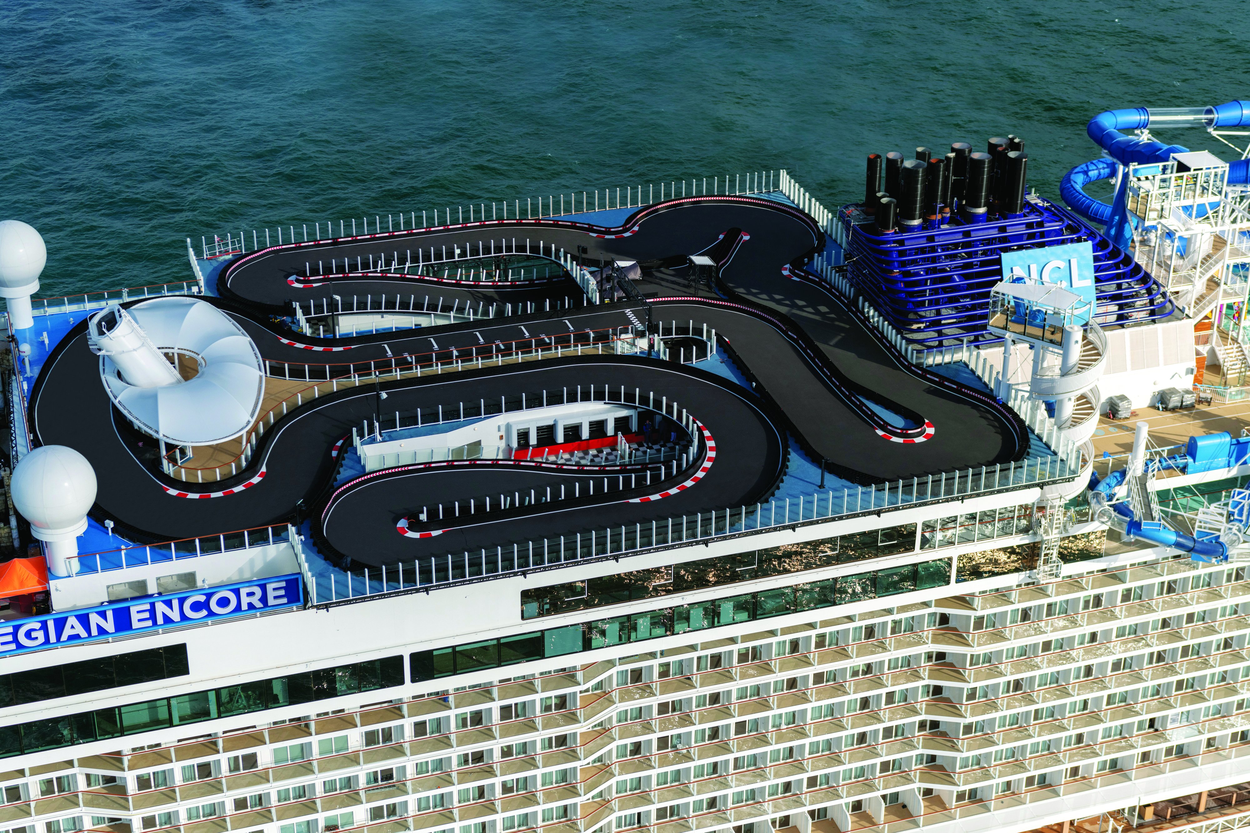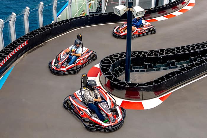 With over 1100 feet of pedal-to-the-metal action, the largest race track at sea is bigger, better and only on Norwegian. Watch the ocean blur by as you zoom around high-speed curves suspended 13 feet off the side of the ship. And spectators can get in on the action, too! Revolutionary interactivity lets you boost your favourite racer past the finish.