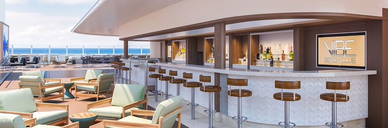 An exclusive oasis at the top of the ship, Vibe Beach Club is an adults-only getaway full of panoramic ocean views, drinks and upgraded lounge chairs with umbrellas. With this package, you'll enjoy Vibe Beach Club access for the entire length of your cruise.