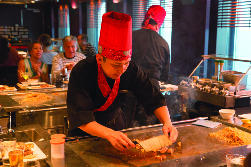 The sizzles and surprises never cease at our authentic Japanese restaurant. Sit around a lively shared table as a skilful chef slices, chops and grills steak, chicken and seafood on a large steel grill right before your eyes.