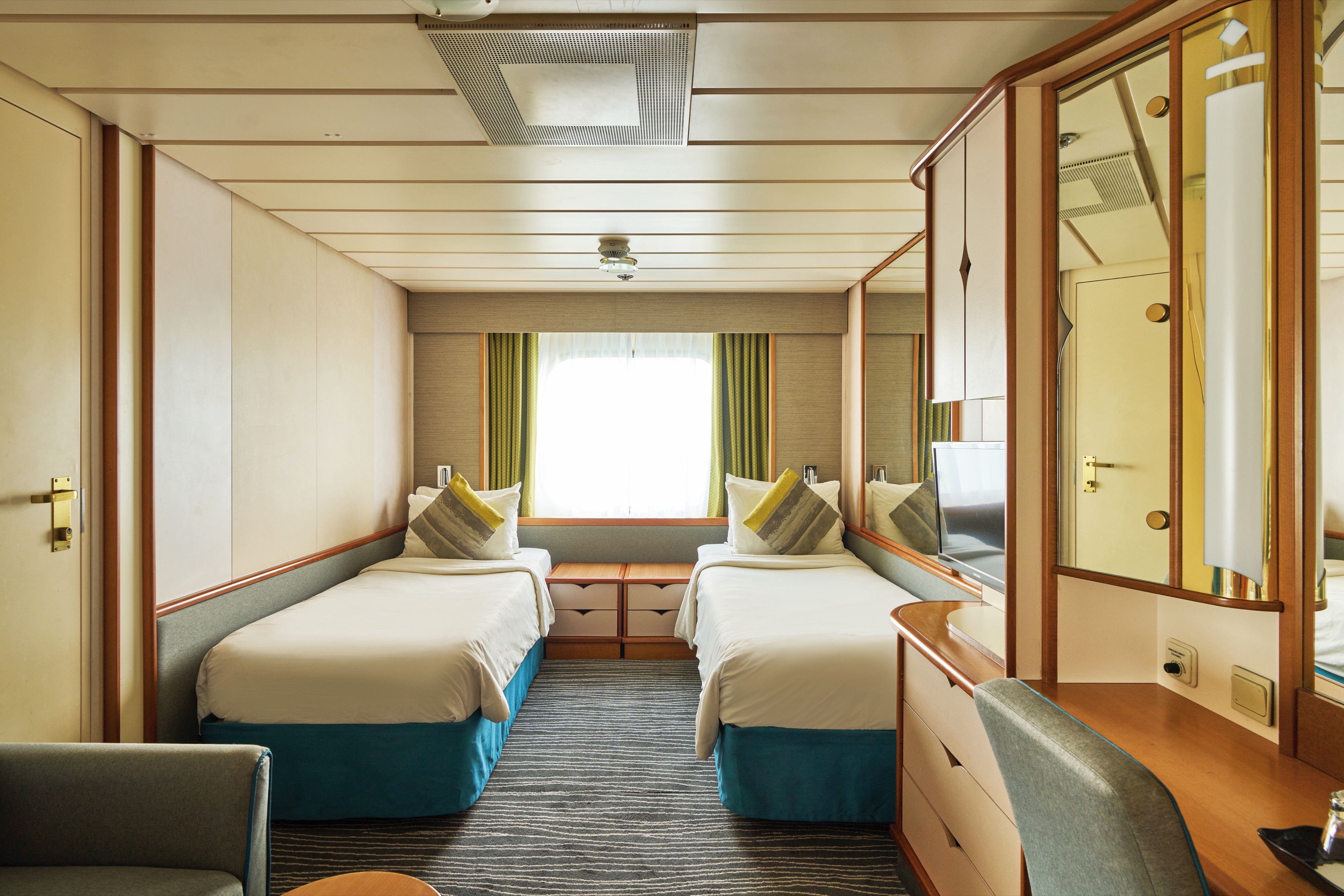 The cabins, deck plans, floor plans and photographs shown are representative of the general standard of cabins onboard. Your cabin may differ slightly in decor, design and size.