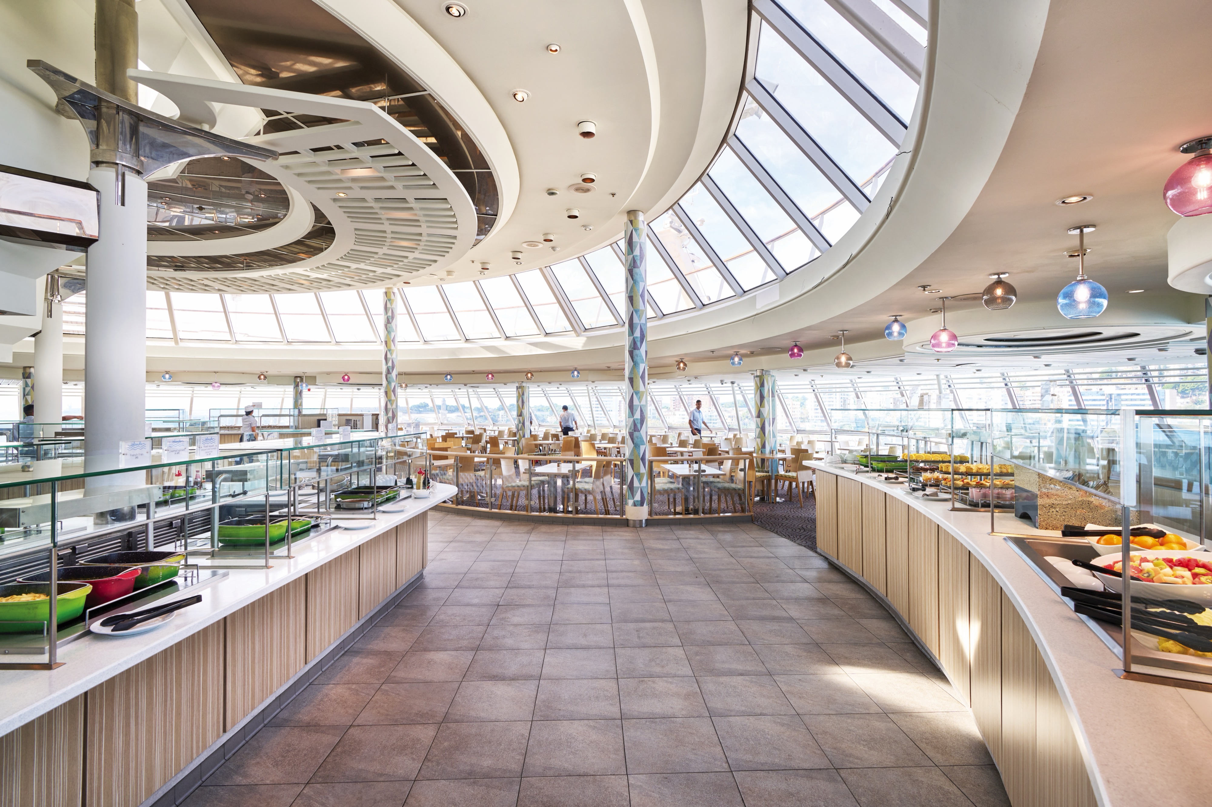 The heart of the ship is taken over by a spectacular five-storey atrium. Think panoramic windows, mood lighting, and Willy Wonka-esque glass lifts. Low-key entertainment is held here, with an agenda that includes cabaret performances and cocktails with the captain.