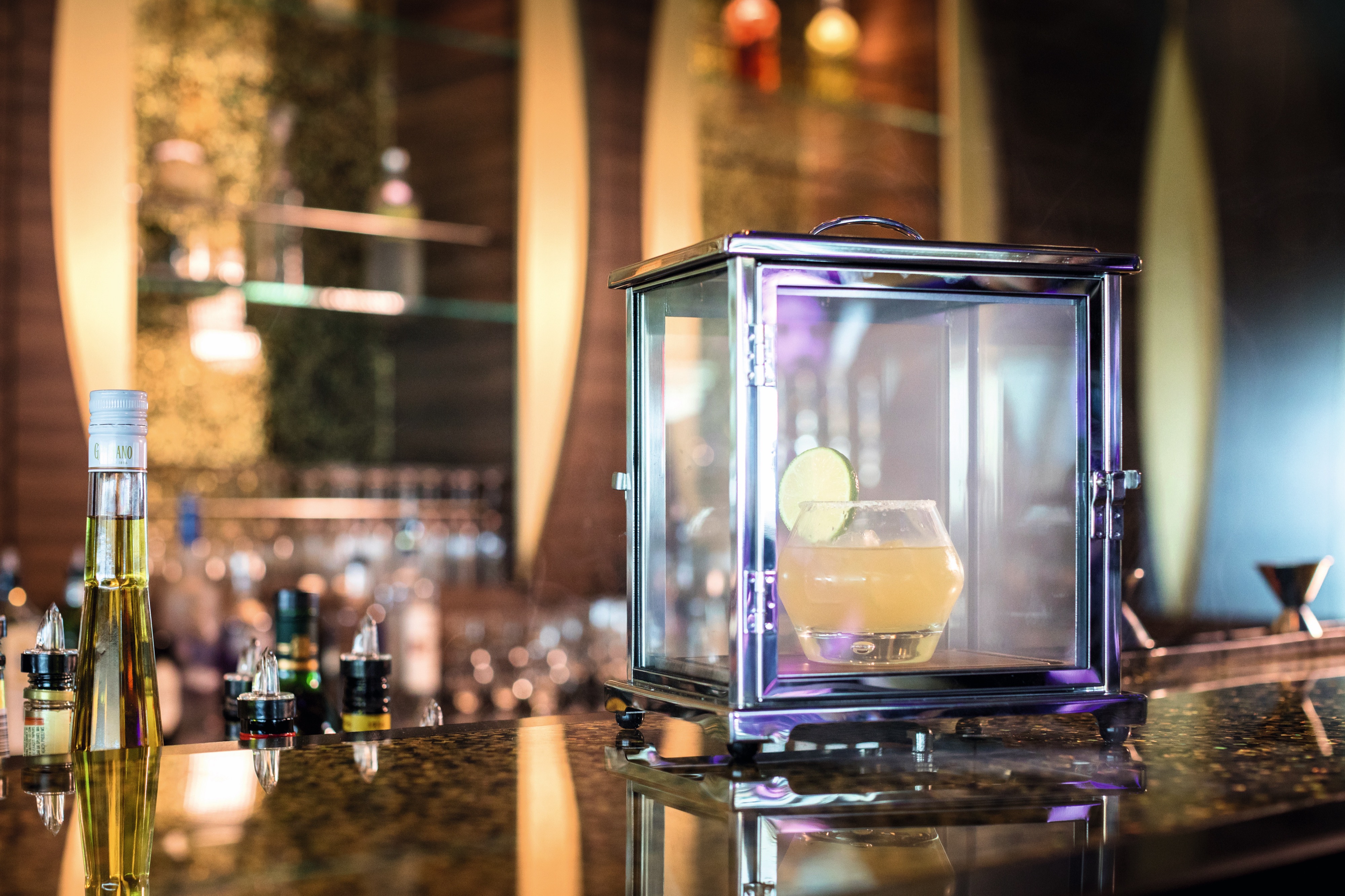 Grab a seat -and a glass of bubbles - at this classy bar, and you'll have a great view of the entertainment in the atrium.