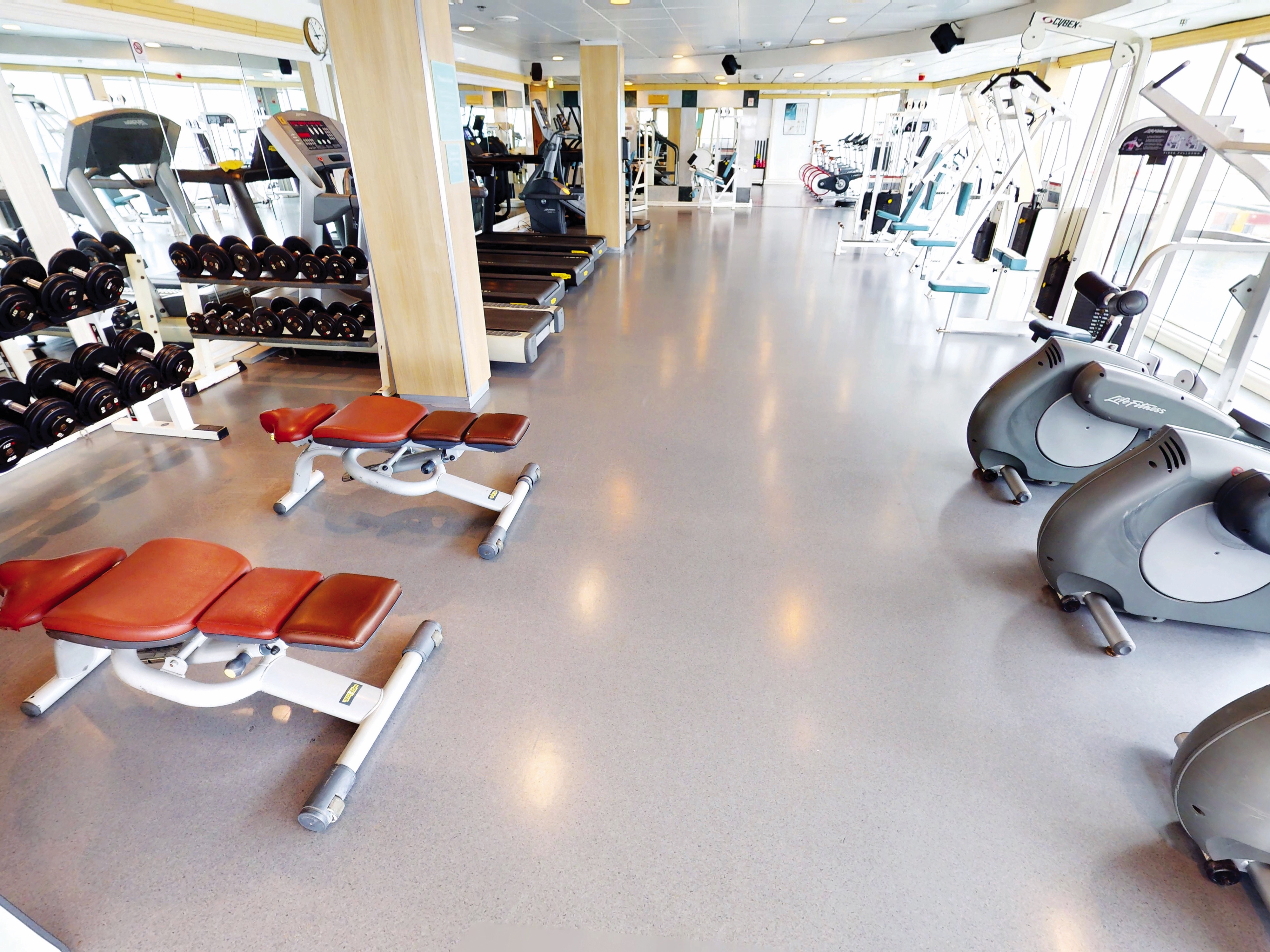 Enjoy a workout in the fleet's largest gym, before working up an even bigger sweat in the sauna.
